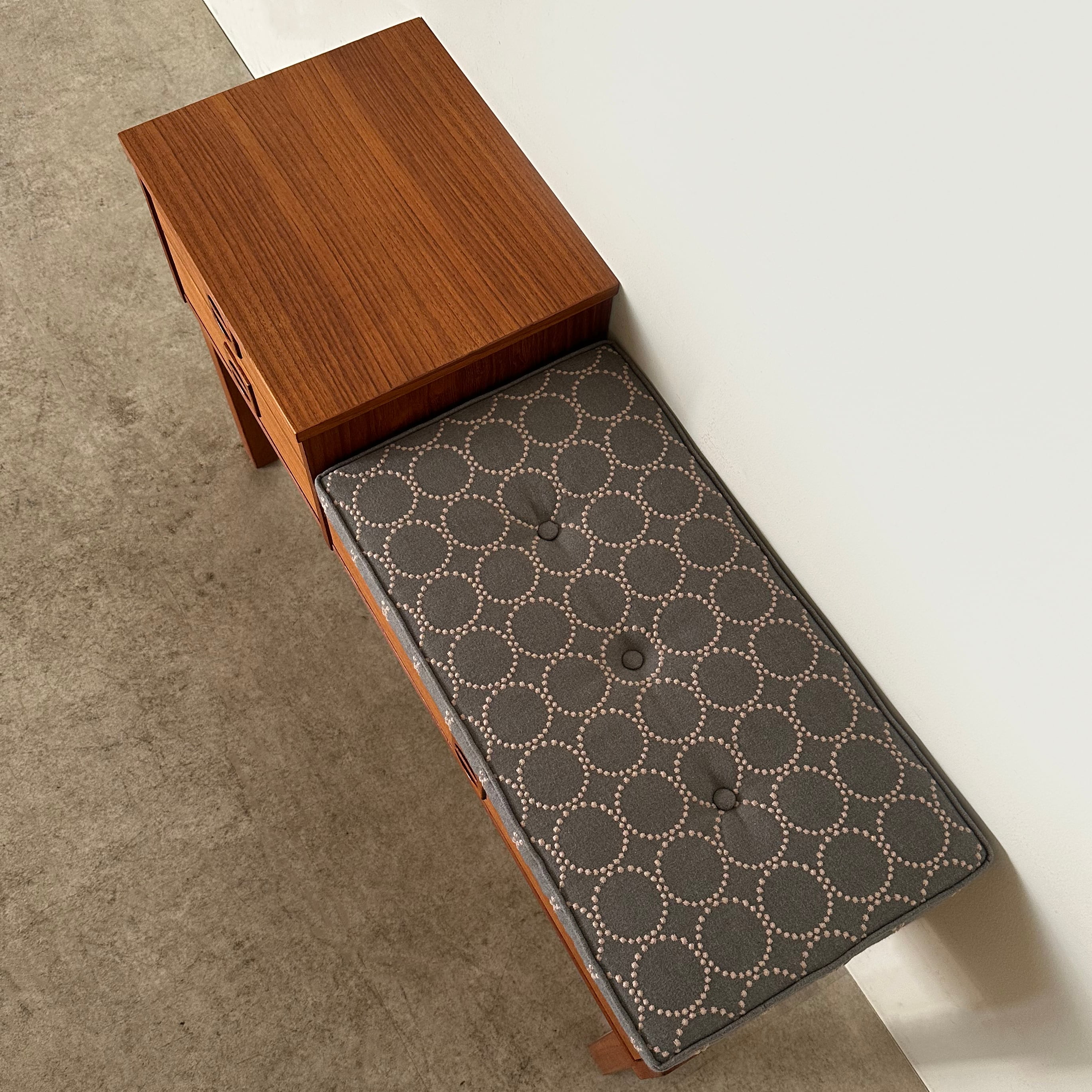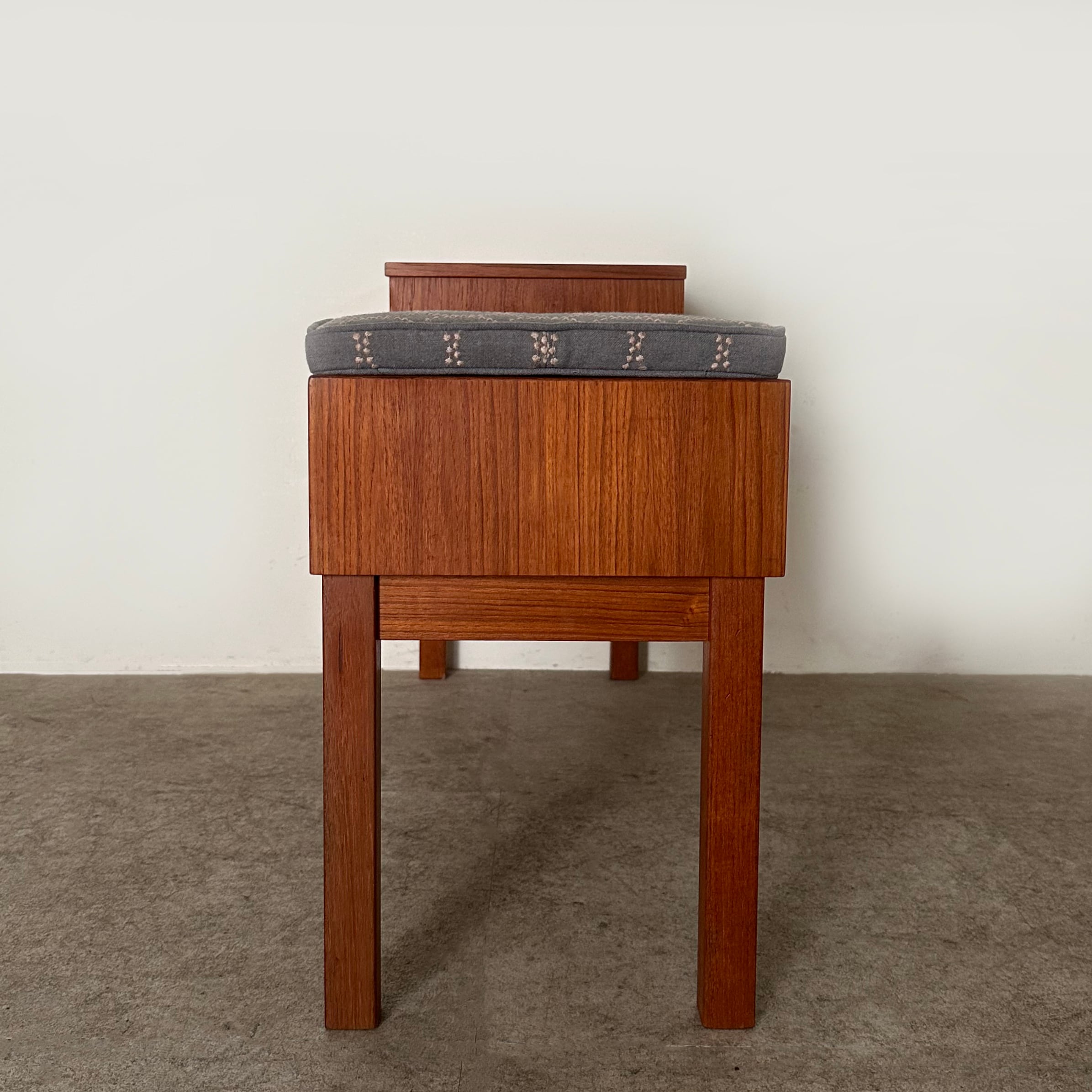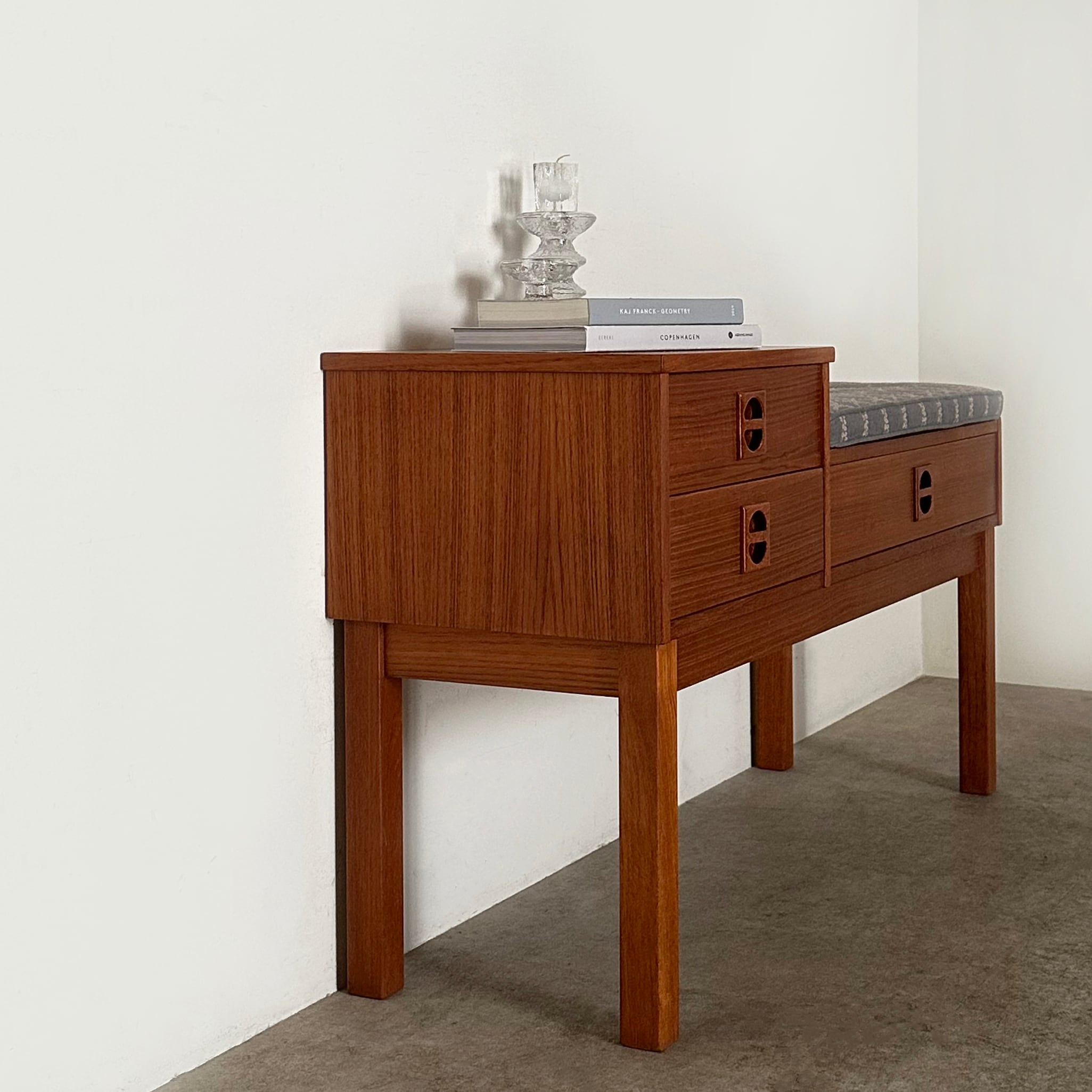 サイズやデザインさまざまにあるテレフォンベンチですが、本品の特徴は座面のベースとなる部分にも引出しが付いていること。ベンチとしてはもちろん収納家具としても十分な容量を備えています。また、シートクッションが取り外すことができるのも嬉しいポイント。腰掛けるだけでなく、ディスプレイスペースとしてなど、用途や空間に合わせたさまざまな設えを可能にします。