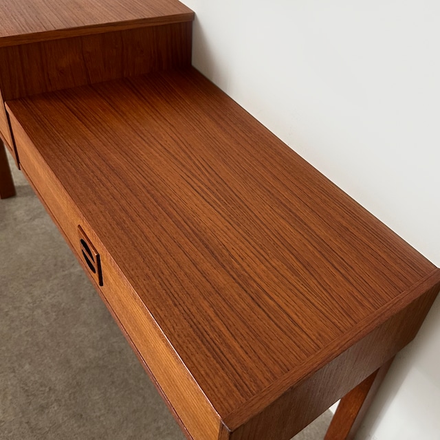 小さなキズはありますが、家具全体として見た際にはほとんど目立たない程度です。経年により艶やかな深みが加わった美しいチークの木目を長く楽しんでいただける仕上がりになっております。