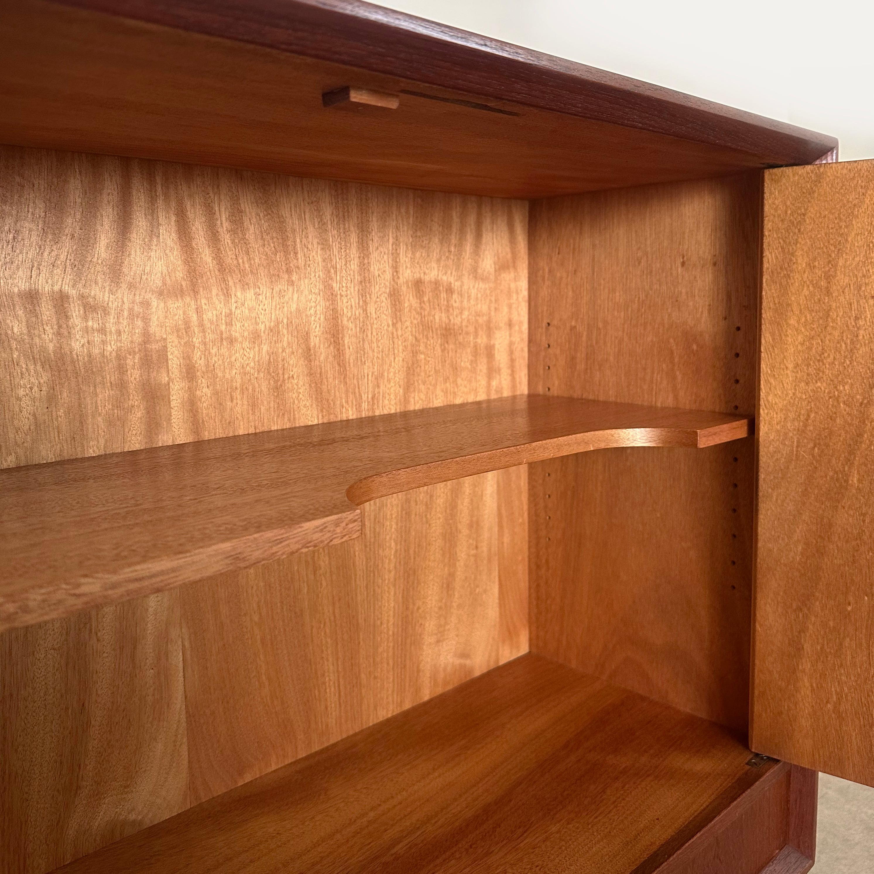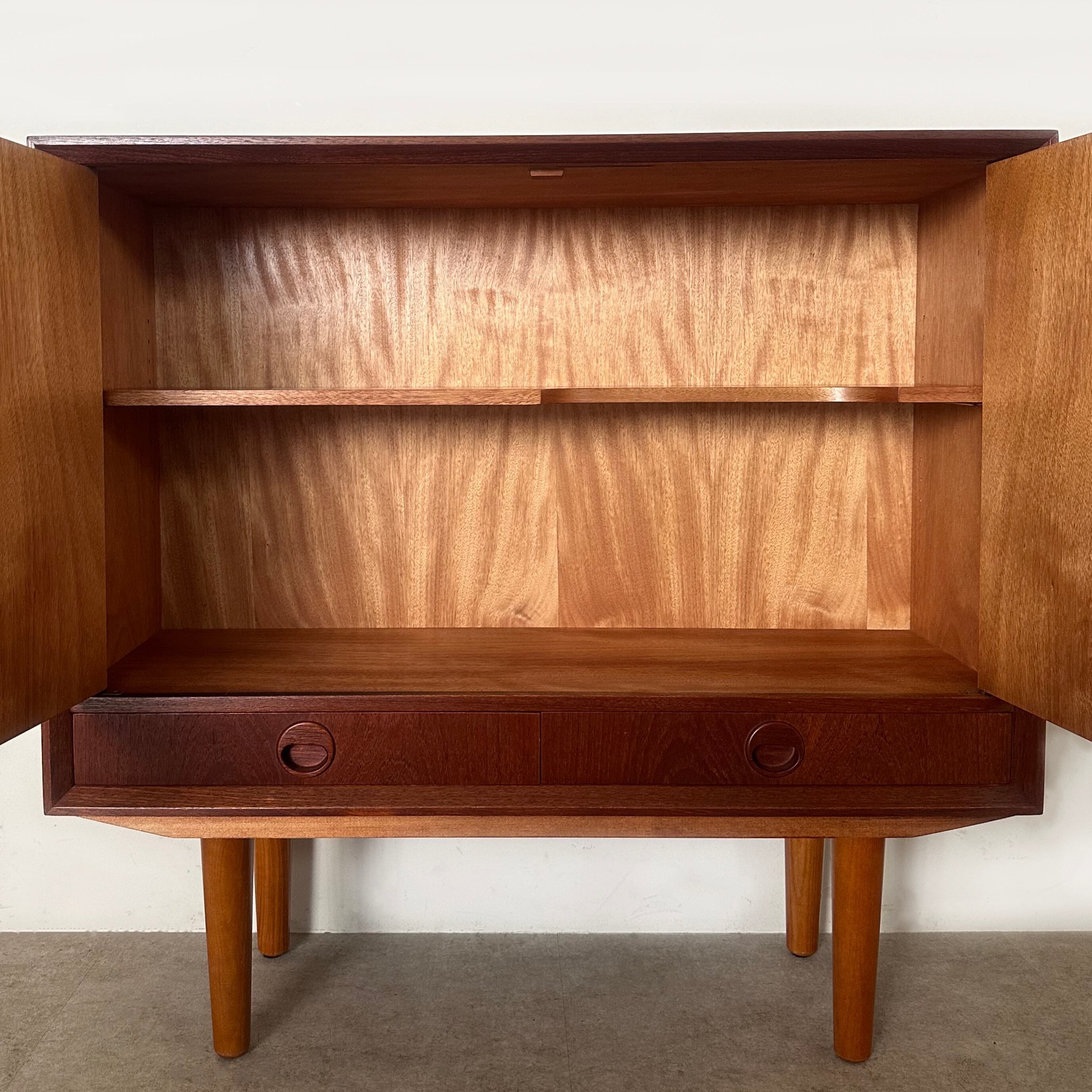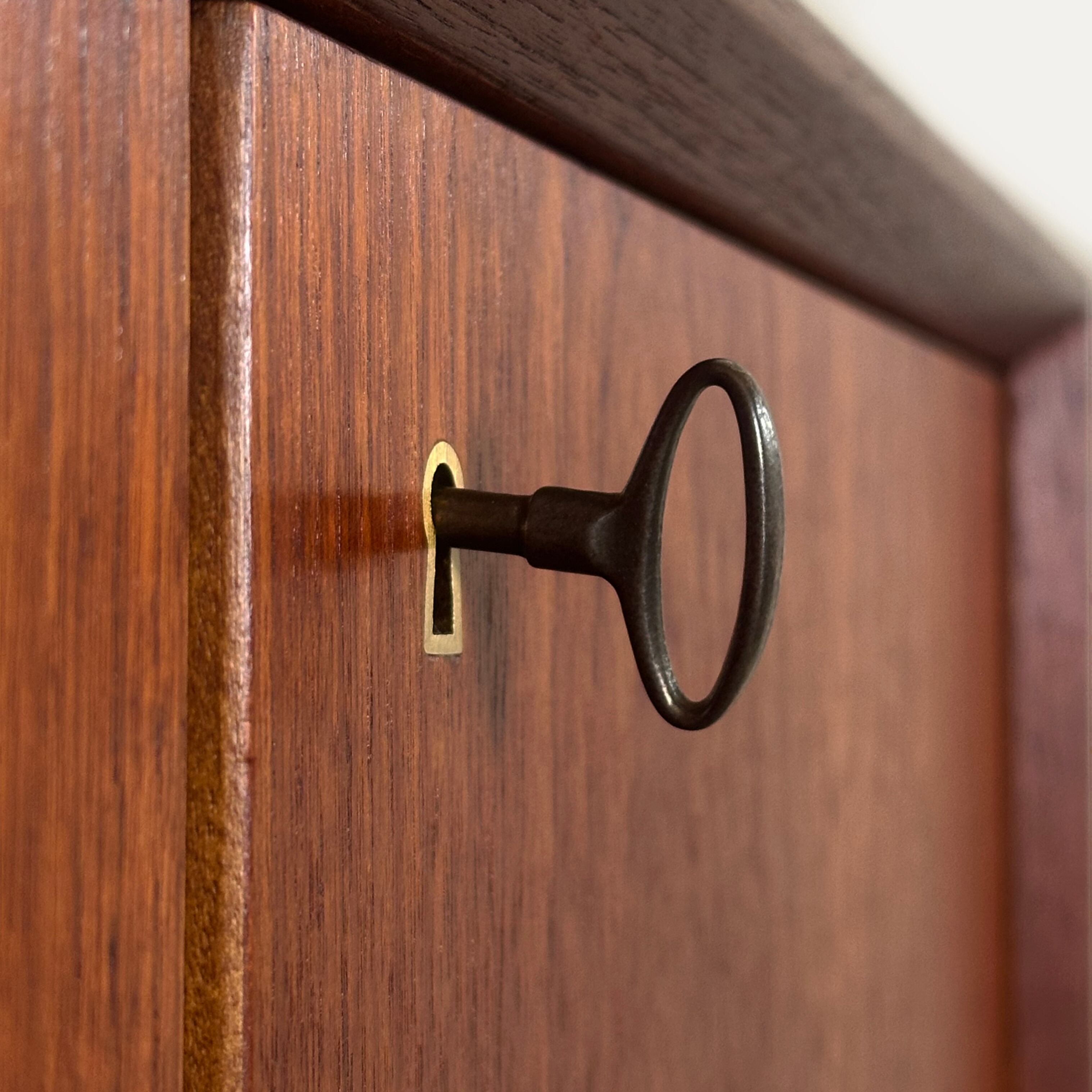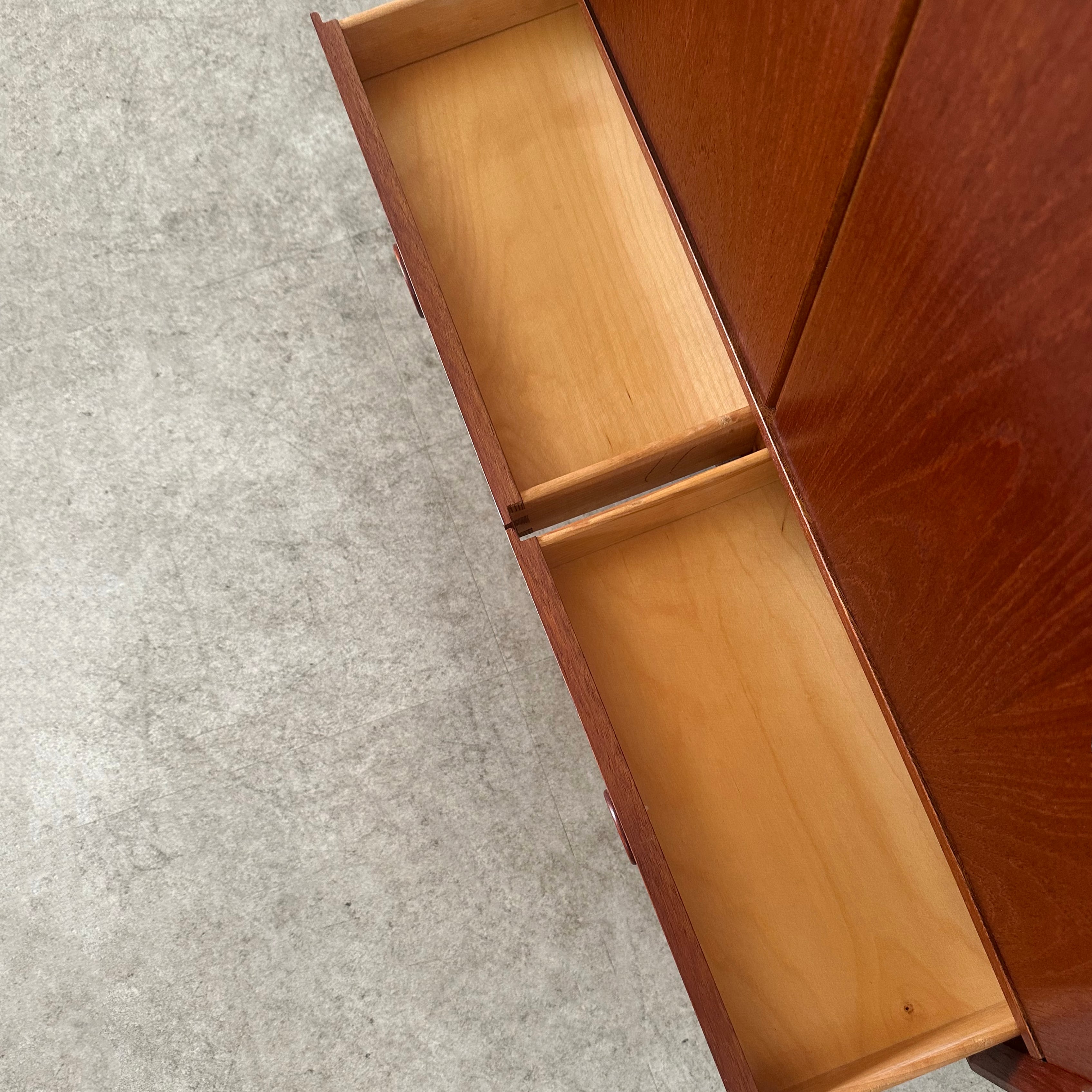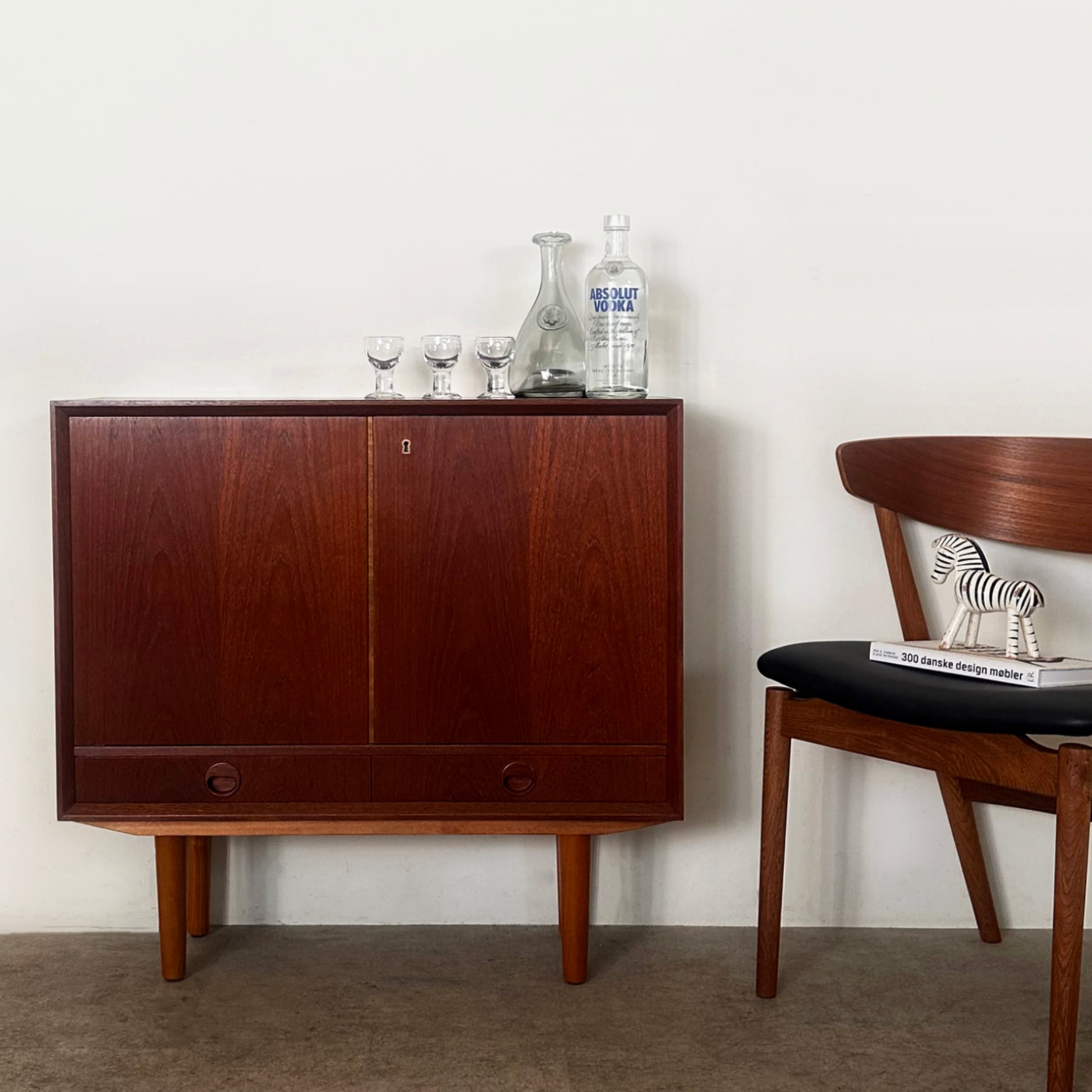 北欧ヴィンテージ家具には、執務用デスクやサイドボードの中に密かにバーキャビネットの設えがなされているものがあります。一見するとわからないのですが、内部にお酒のボトルをこっそりと仕舞えるような仕組みが取り入れられていました。