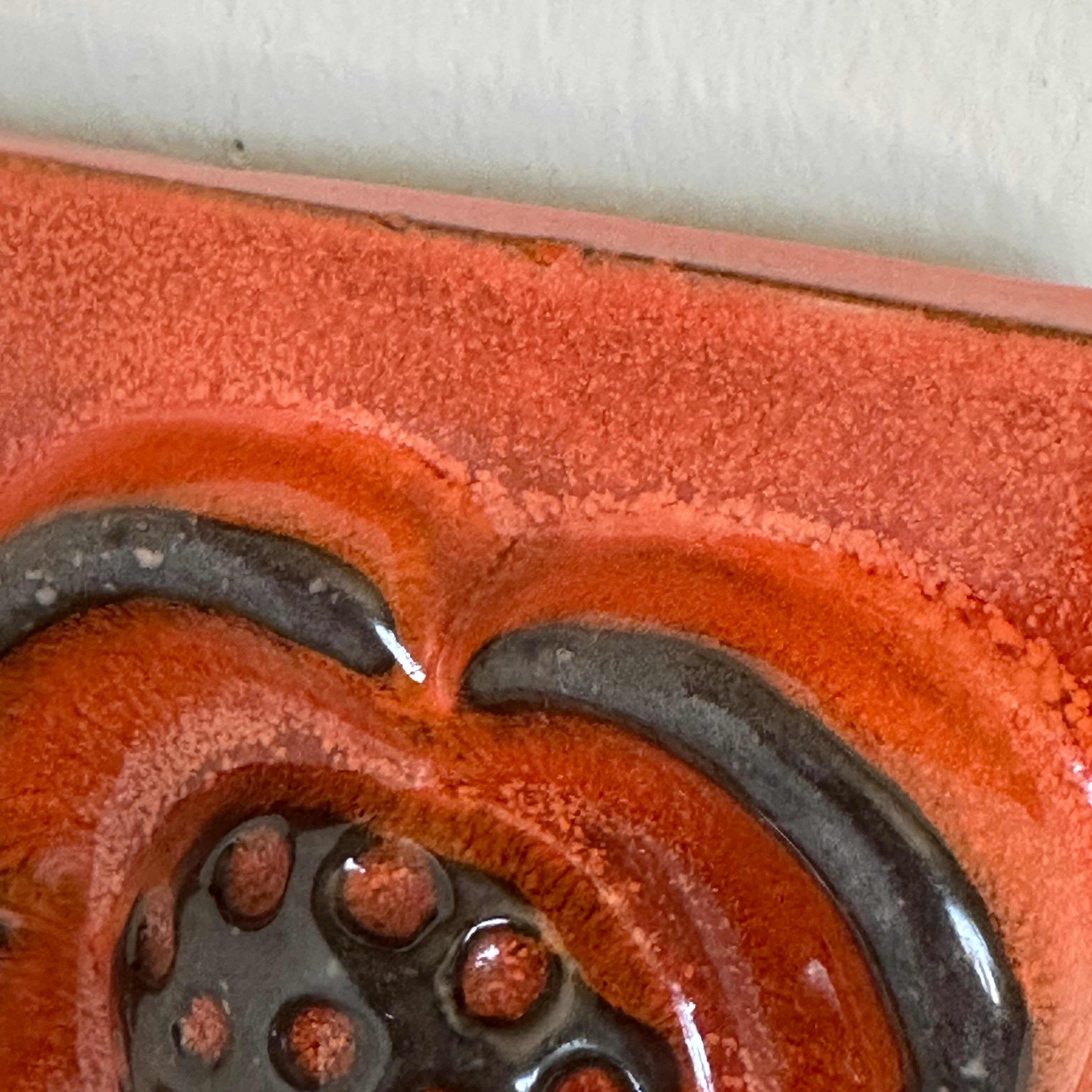 1970年代にスウェーデンで作られた、ウォールデコレーション " Fleur "。(フランス語で花の意) Gefle(ゲフレ)のコスモスシリーズをはじめとした立体的な造形美を誇る作品を多数創出した女性デザイナー、ベリット・ターナーによるもので、作られた期間が短かったこともあり希少な作品の一つとなっています。この" Fleur " は、陶板の他、ミラーや花瓶などのシリーズとして作られ、赤橙色・緑、青などの多色展開をしていました。