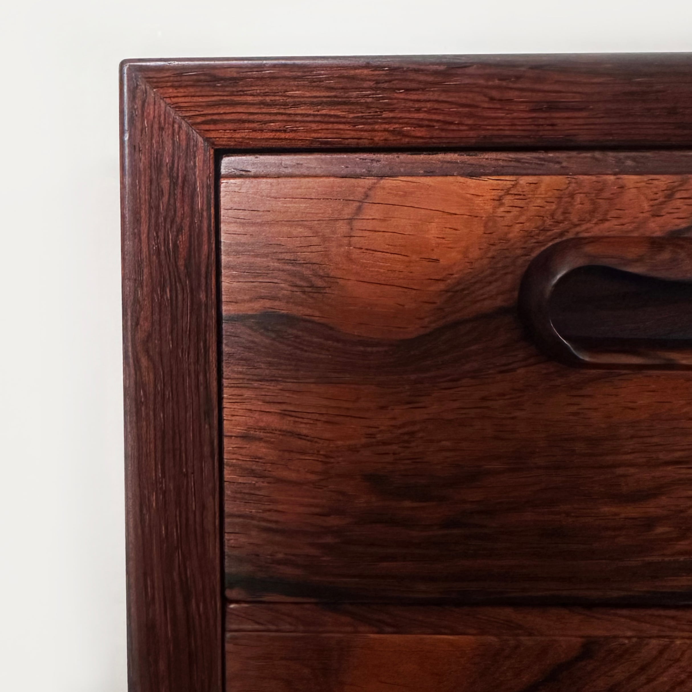 端正なフォルムが際立つこのチェストの魅力は、ローズウッド特有の艶と流れるような漆黒の美しい縞模様。装飾の少ないシンプルなデザインがローズウッドの美しさをより鮮明に表現しています。