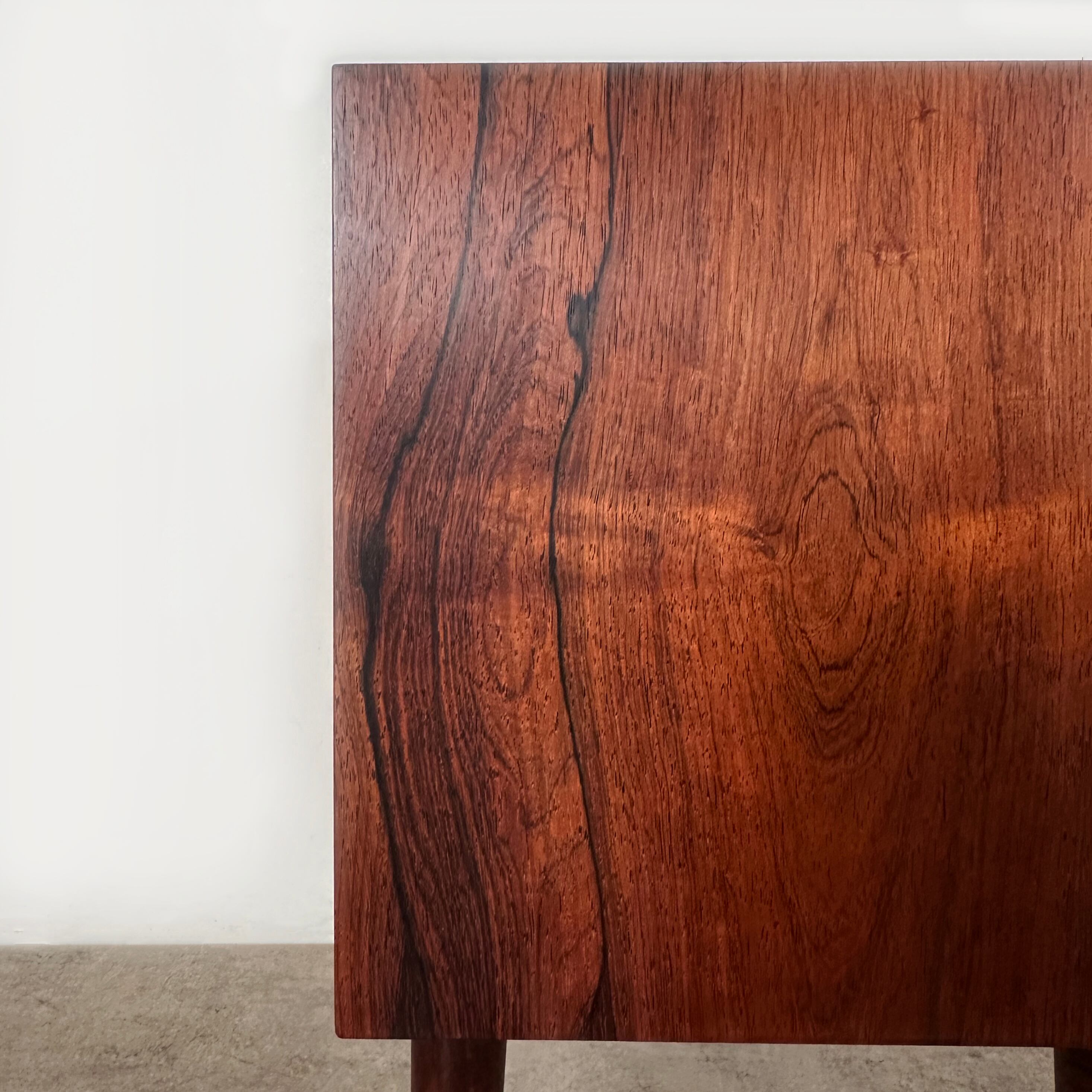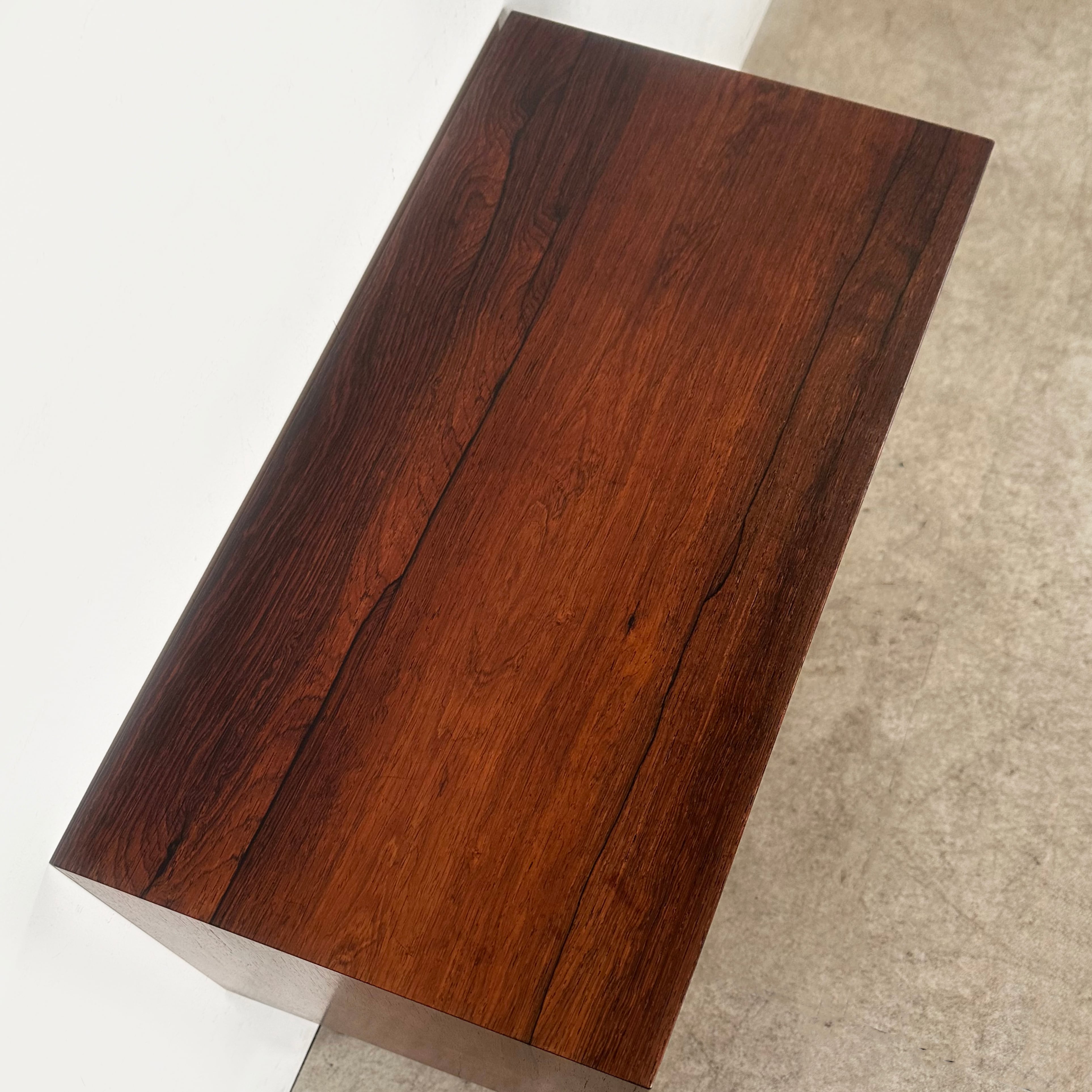 惜しみなくローズウッドを用いた本品は、収納家具として暮らしに馴染みながらも、自然が生み出した木目の表情を静かに味わうことができる特別な一台です。