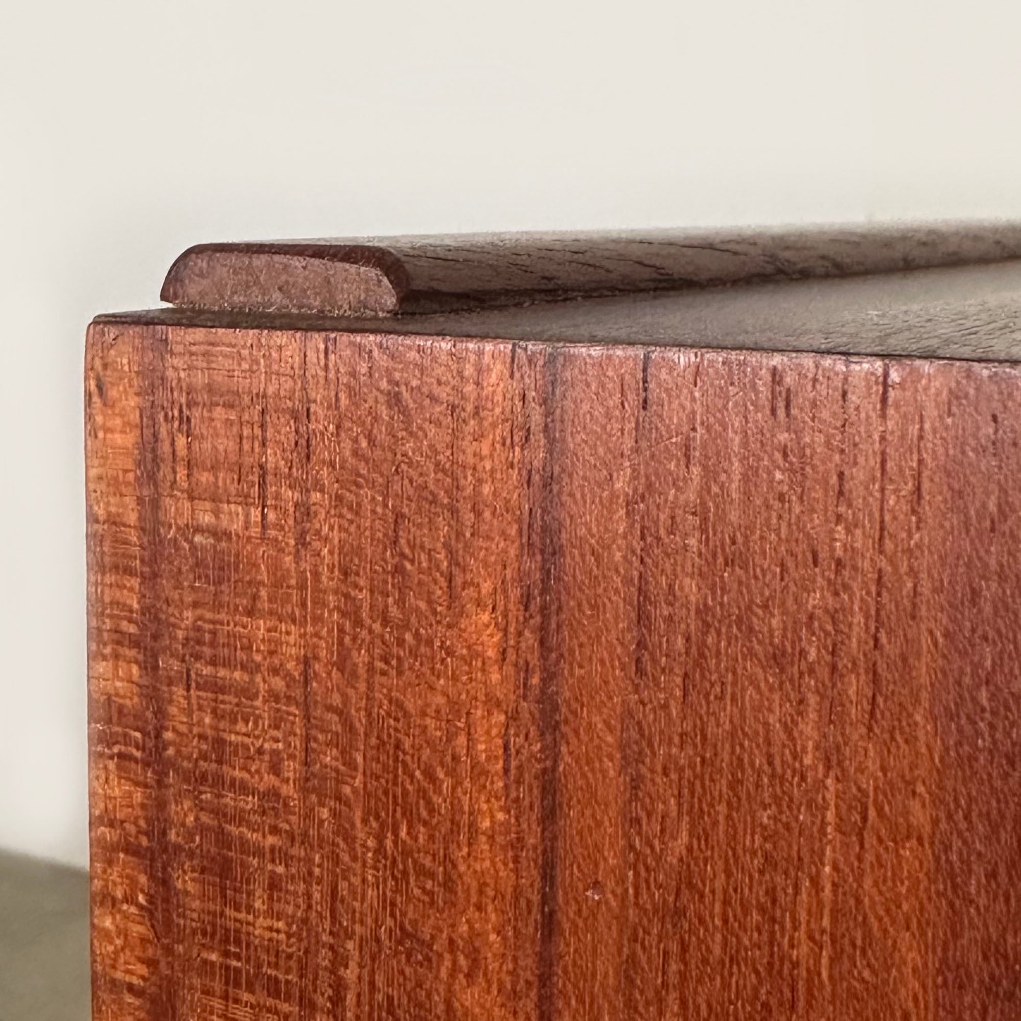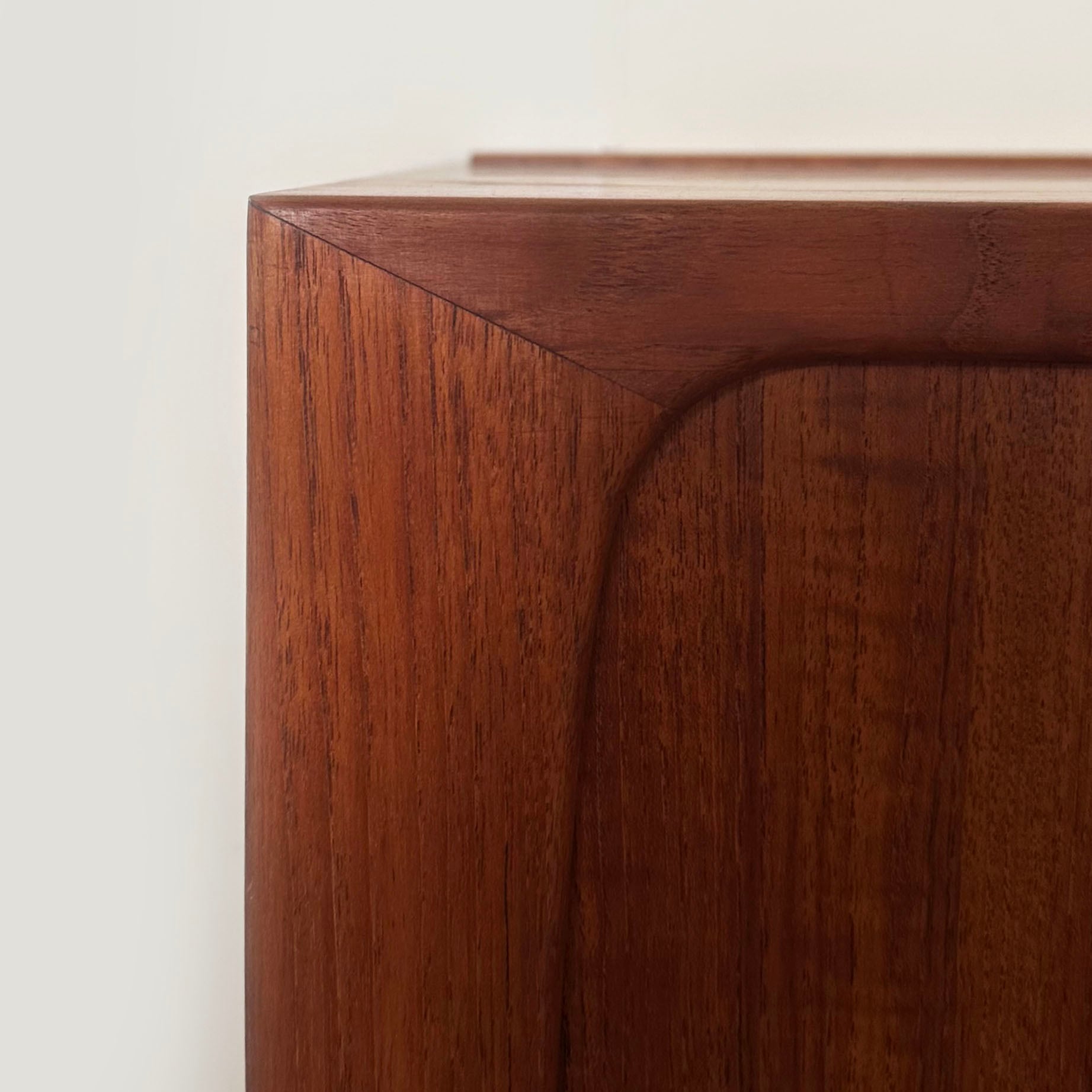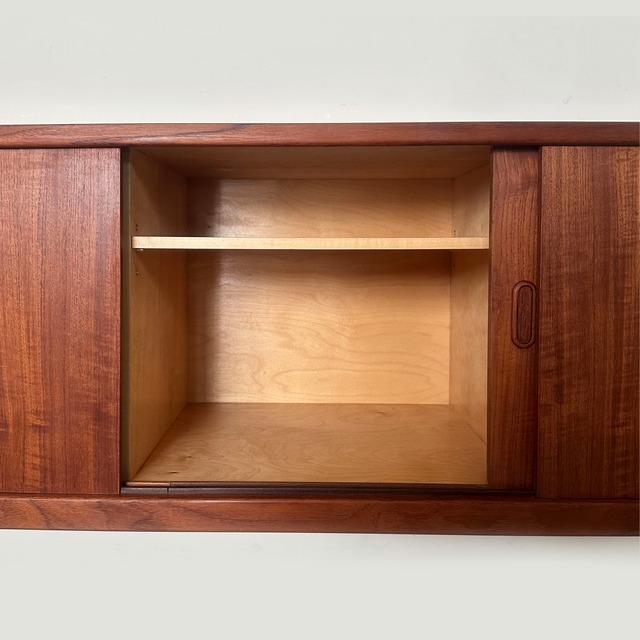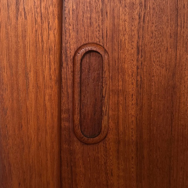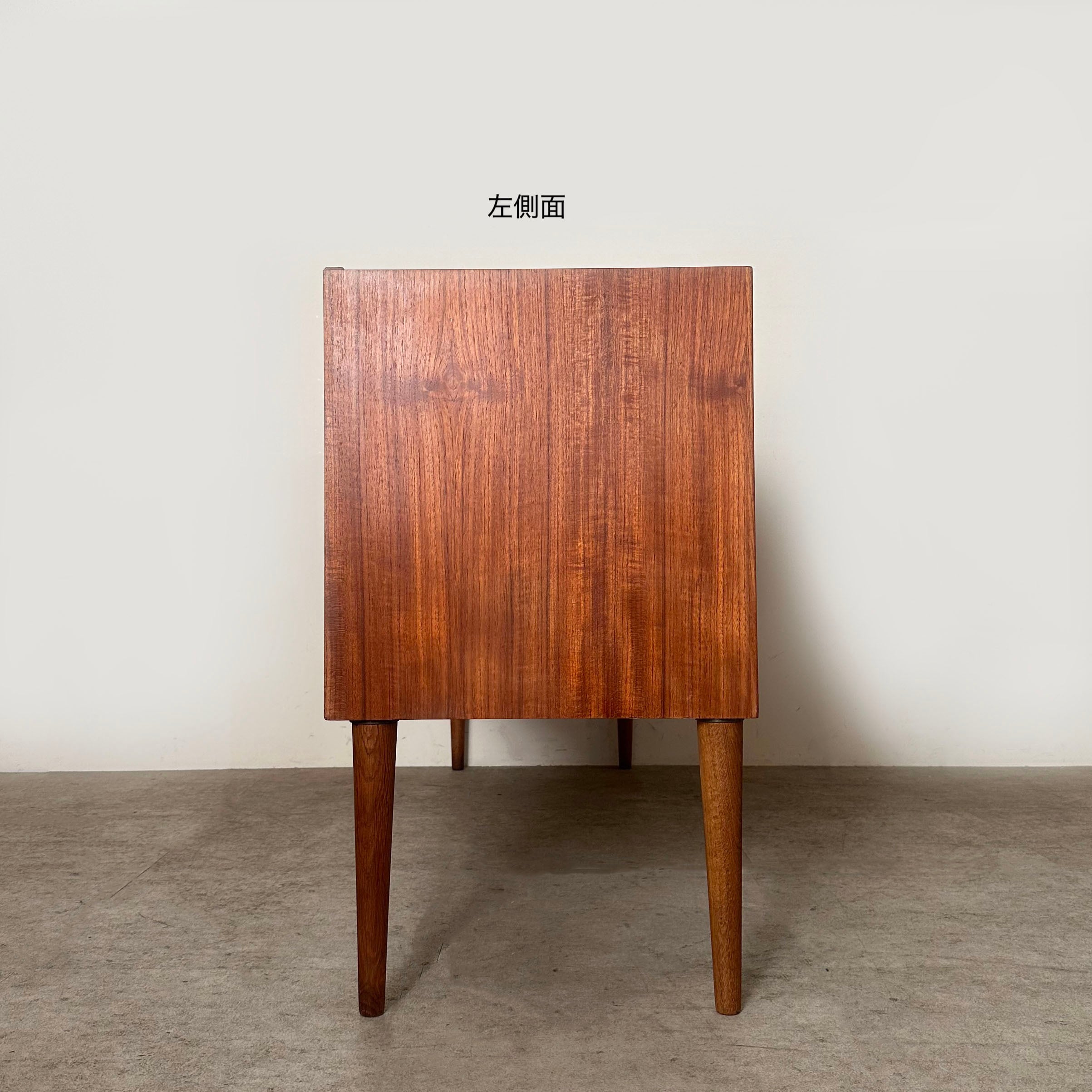 額縁のように縁取られた端正なデザインと、チークならではの豊かな木目が生み出す落ち着きのある佇まい。主張しすぎることなく空間に溶け込みながら、静かに確かな存在感を添えるのは、北欧ヴィンテージ家具ならではの魅力です。