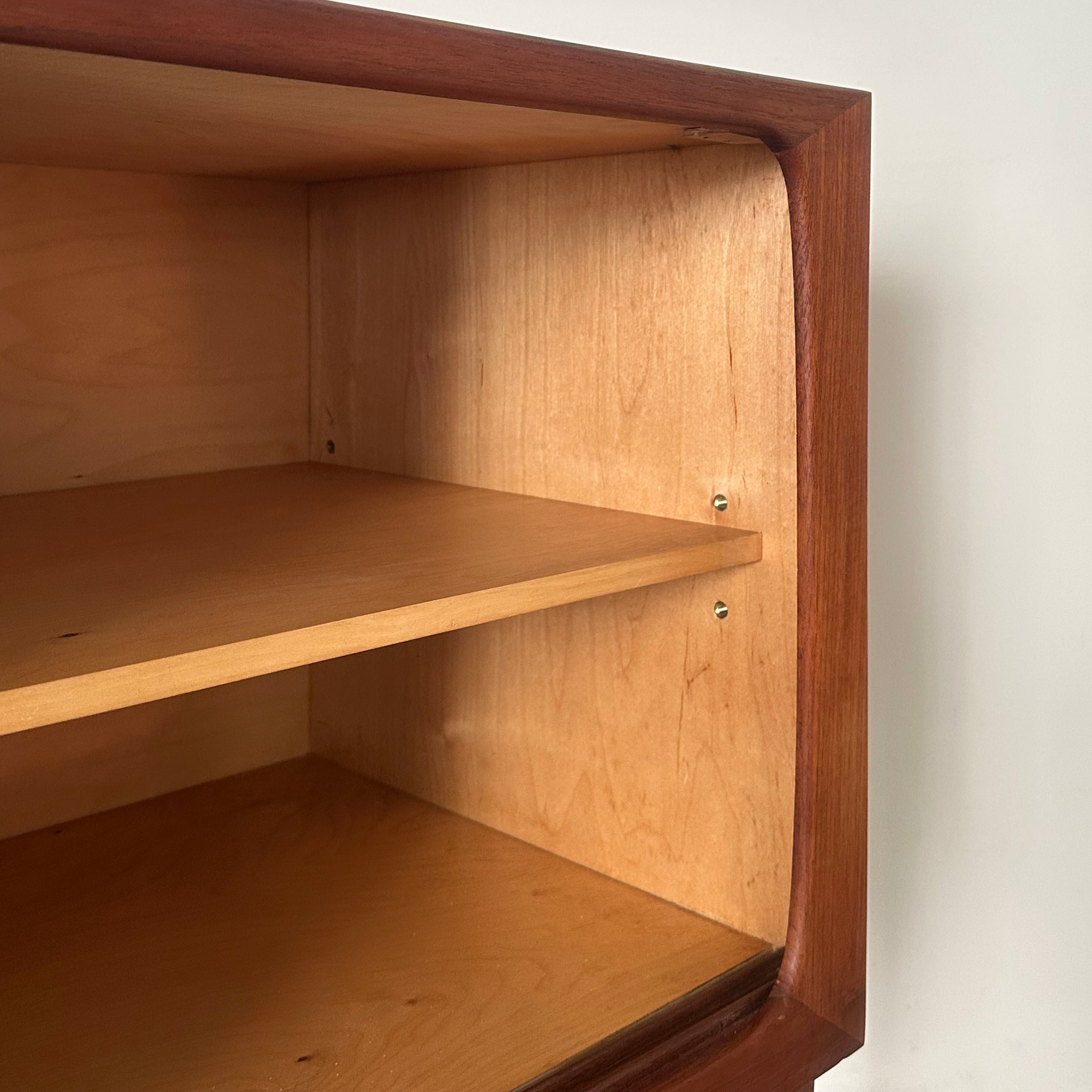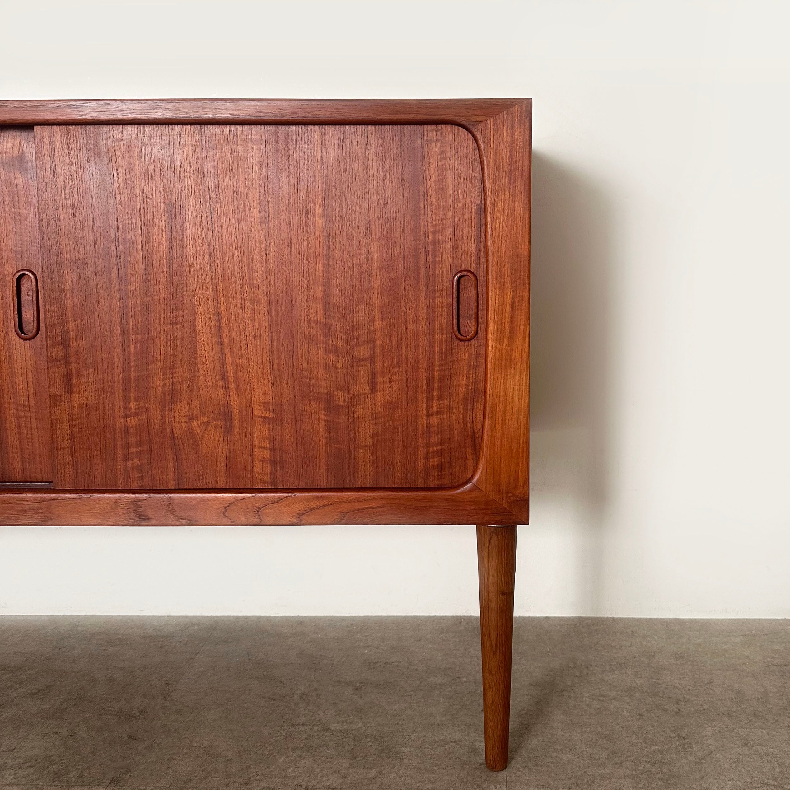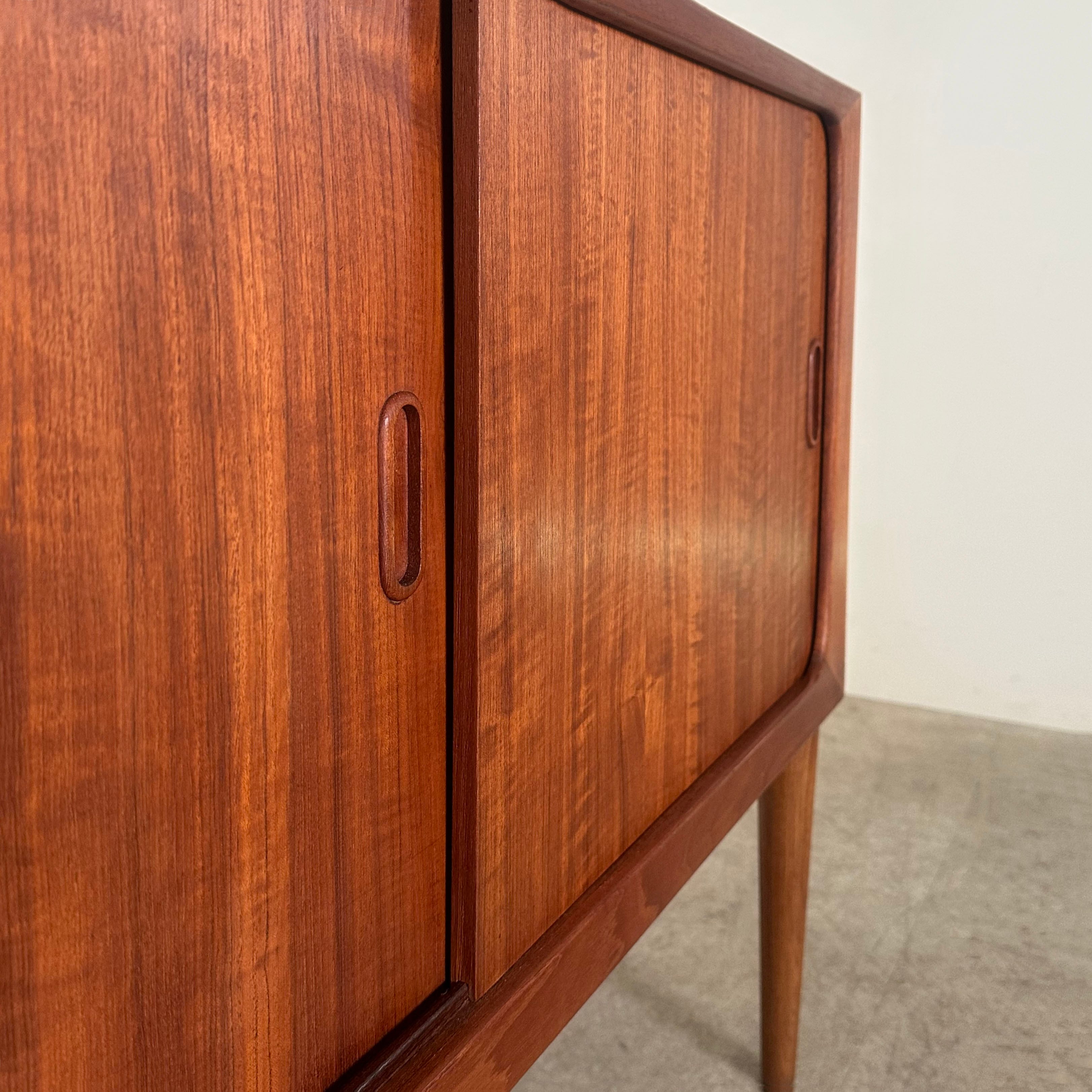 額縁のように縁取られた端正なデザインと、チークならではの豊かな木目が生み出す落ち着きのある佇まい。主張しすぎることなく空間に溶け込みながら、静かに確かな存在感を添えるのは、北欧ヴィンテージ家具ならではの魅力です。