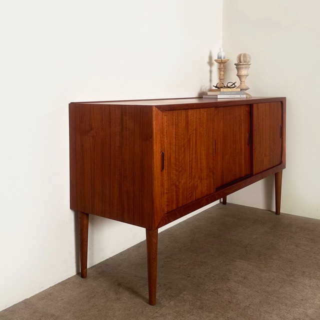 1960年代にデンマークで作られたサイドボード。横幅約156cmと、サイドボードとしてはやや抑えめなサイズで、コンパクトに暮らす私たちの住まいにも取り入れやすい点が魅力です。