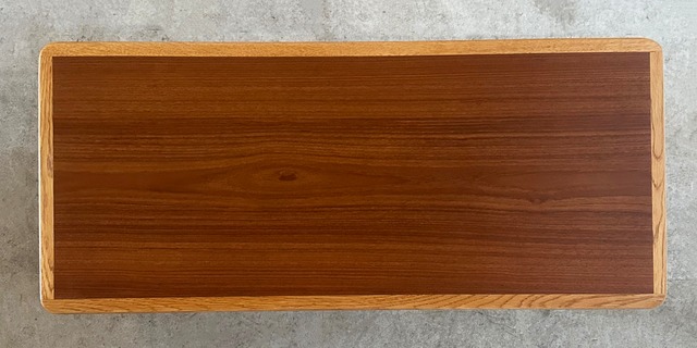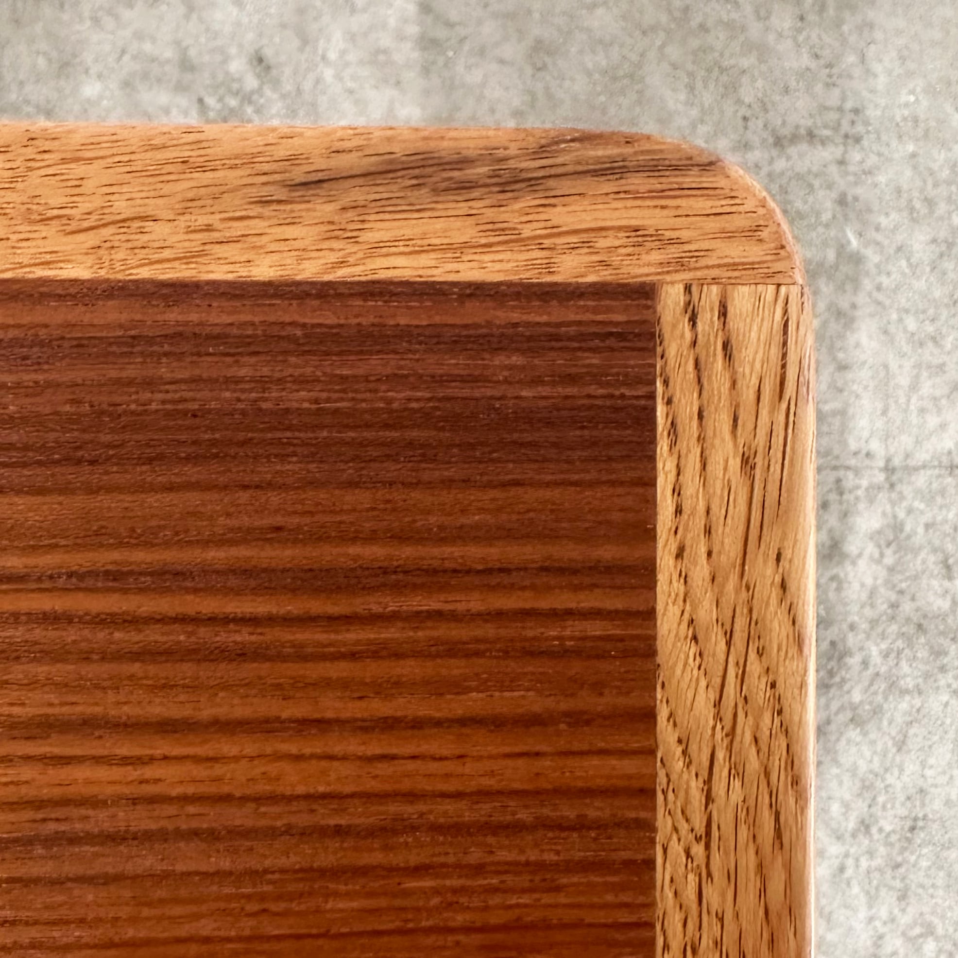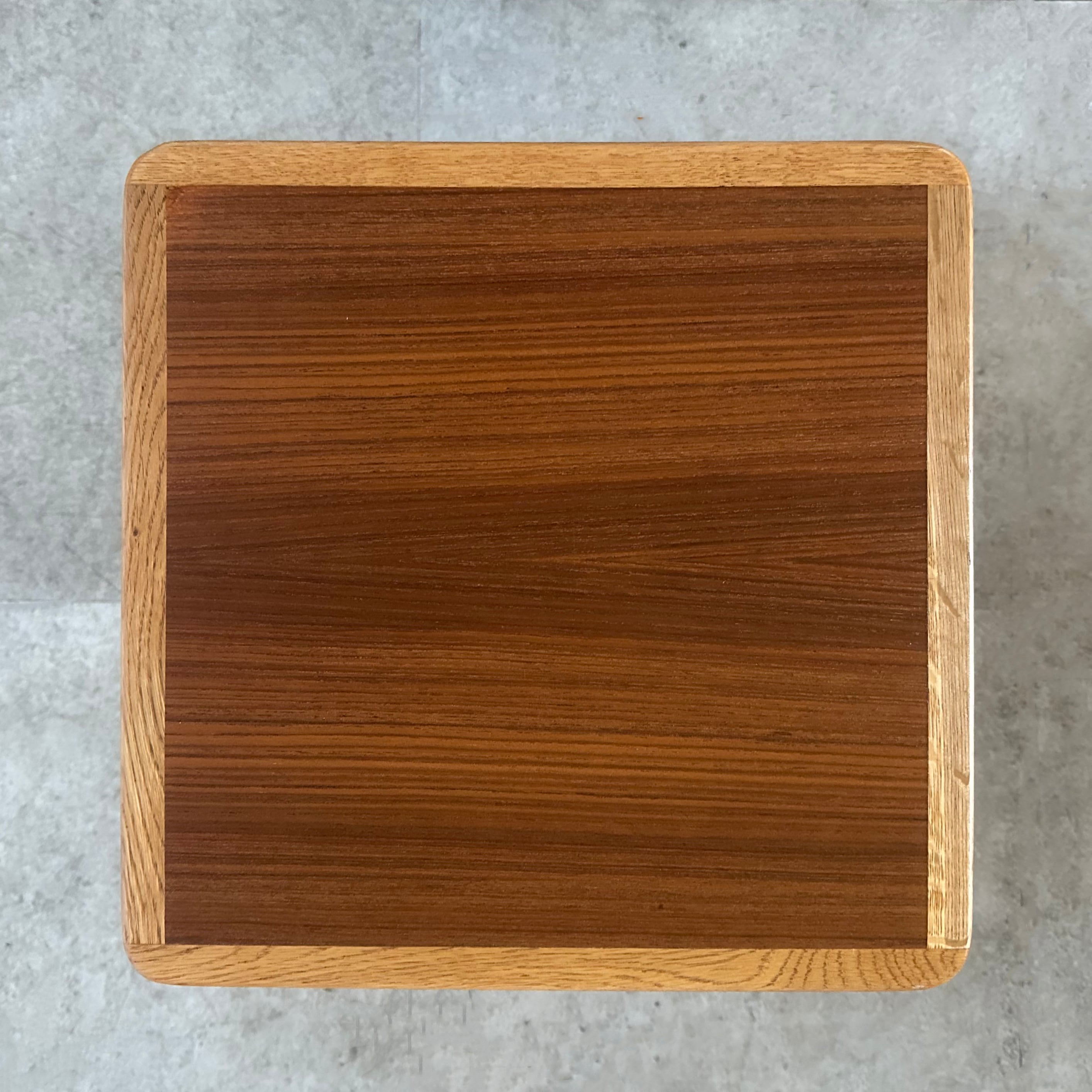 さらに本品の魅力はチークとオークの2つの素材を組み合わせることで生まれる心地よいバランス。落ち着いた表情のチークに飴色の艶を纏ったオークを合わせることで、軽やかさと立体感が引き立ち、和洋問わずあらゆる空間に馴染むデザインに仕上がっています。日々の暮らしの中でシーンに合わせて自在に寄り添う、使うほどに愛着の深まる一台です。