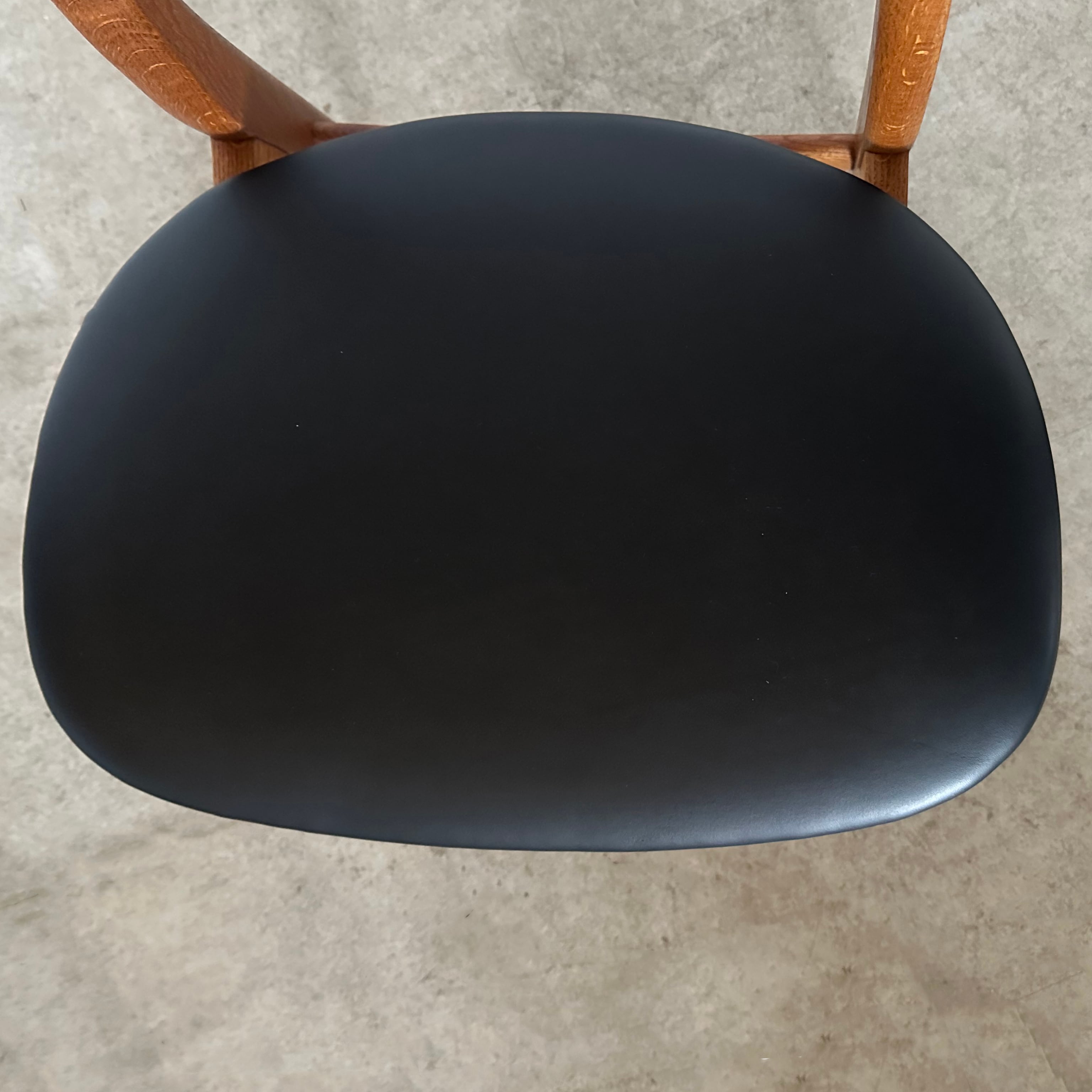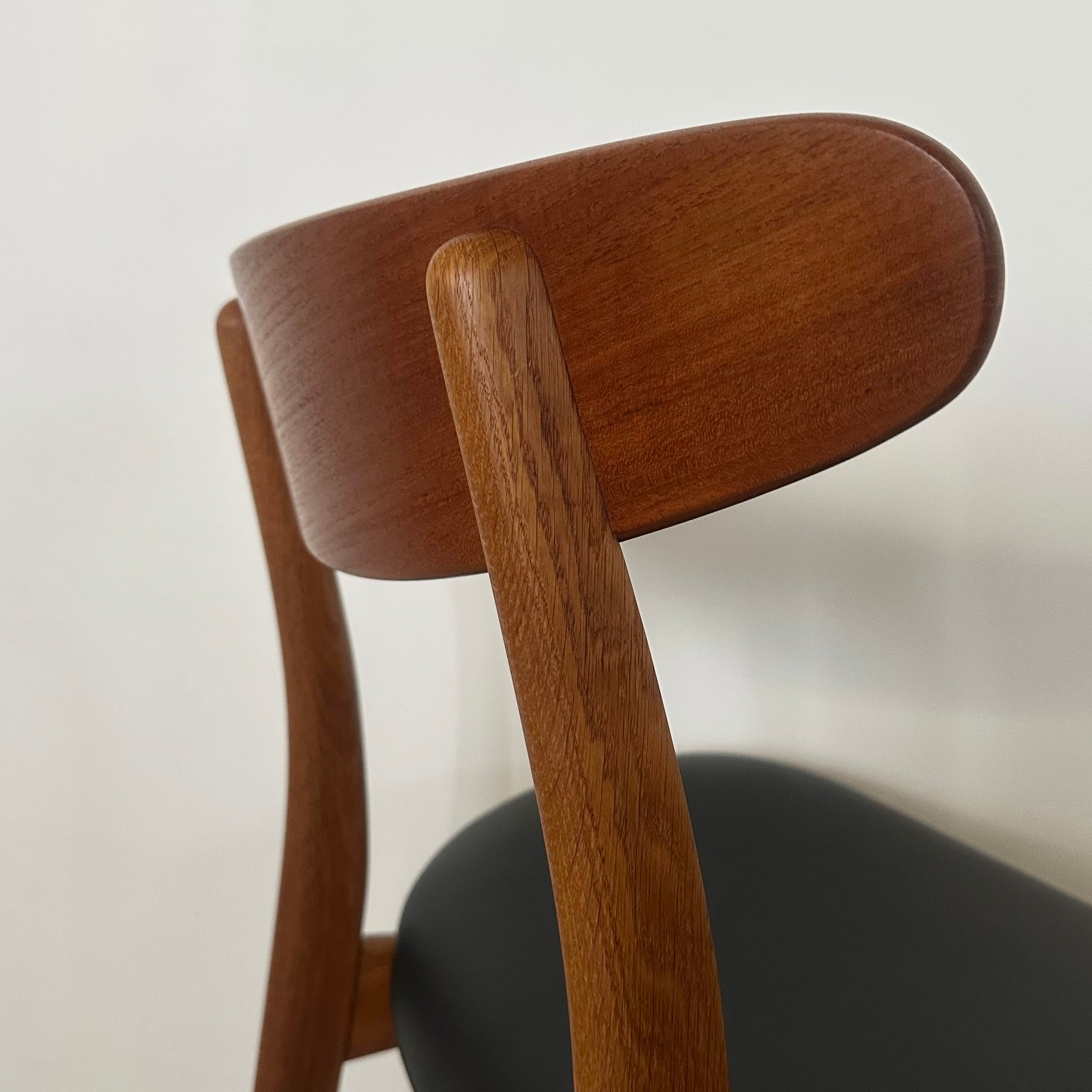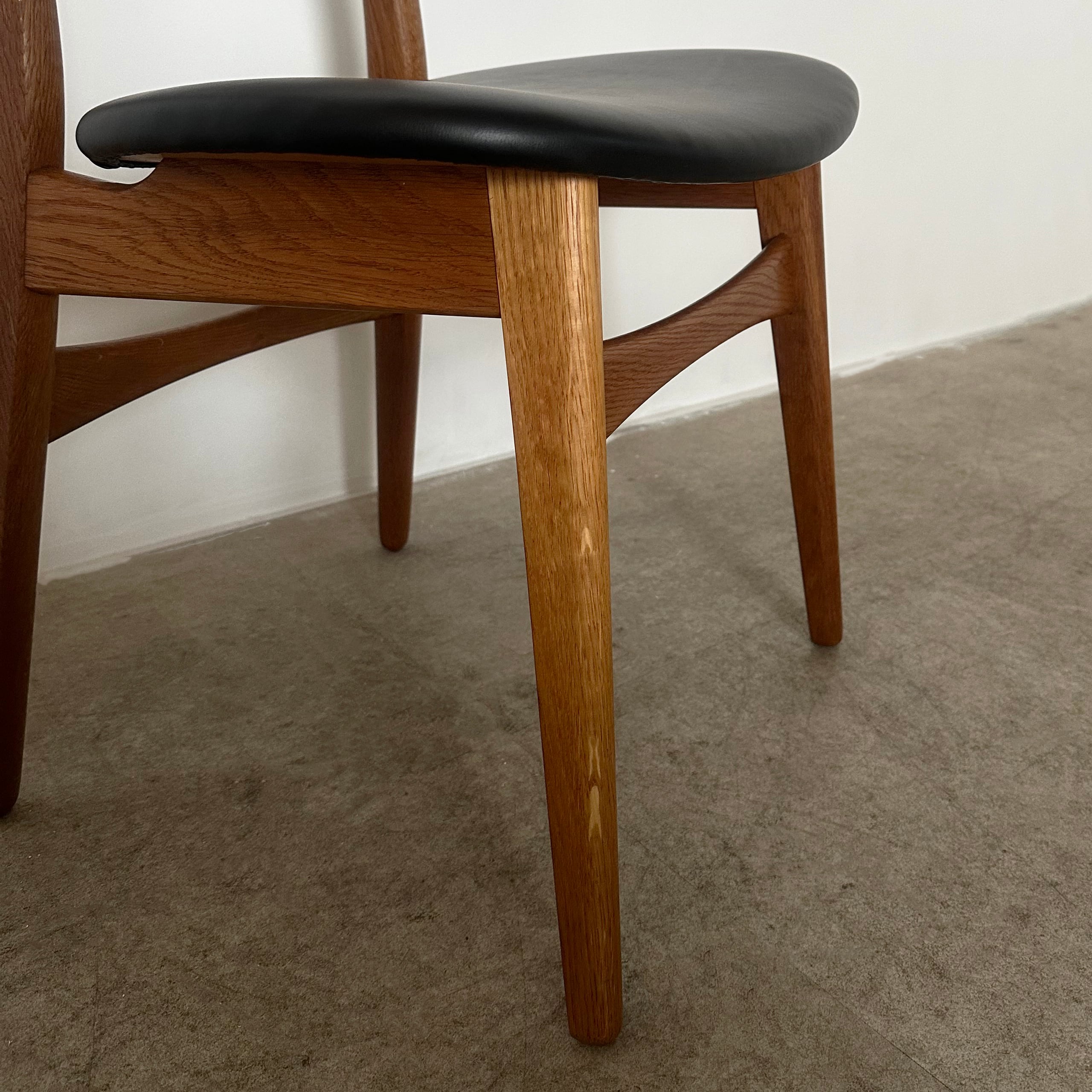 近年、カールハンセン&サン社よりオークとウォルナットを用いたモデルが現行品として復刻しましたが、本品はデザイン発表から間もない時期に作られたチークとオークのコンビネーションが美しいオリジナルのヴィンテージチェアです。