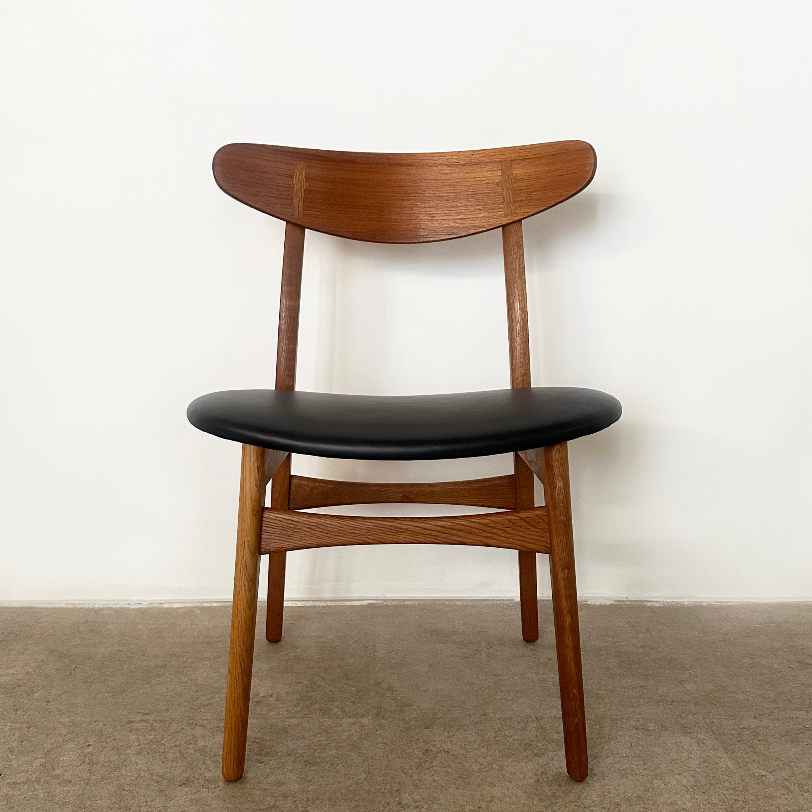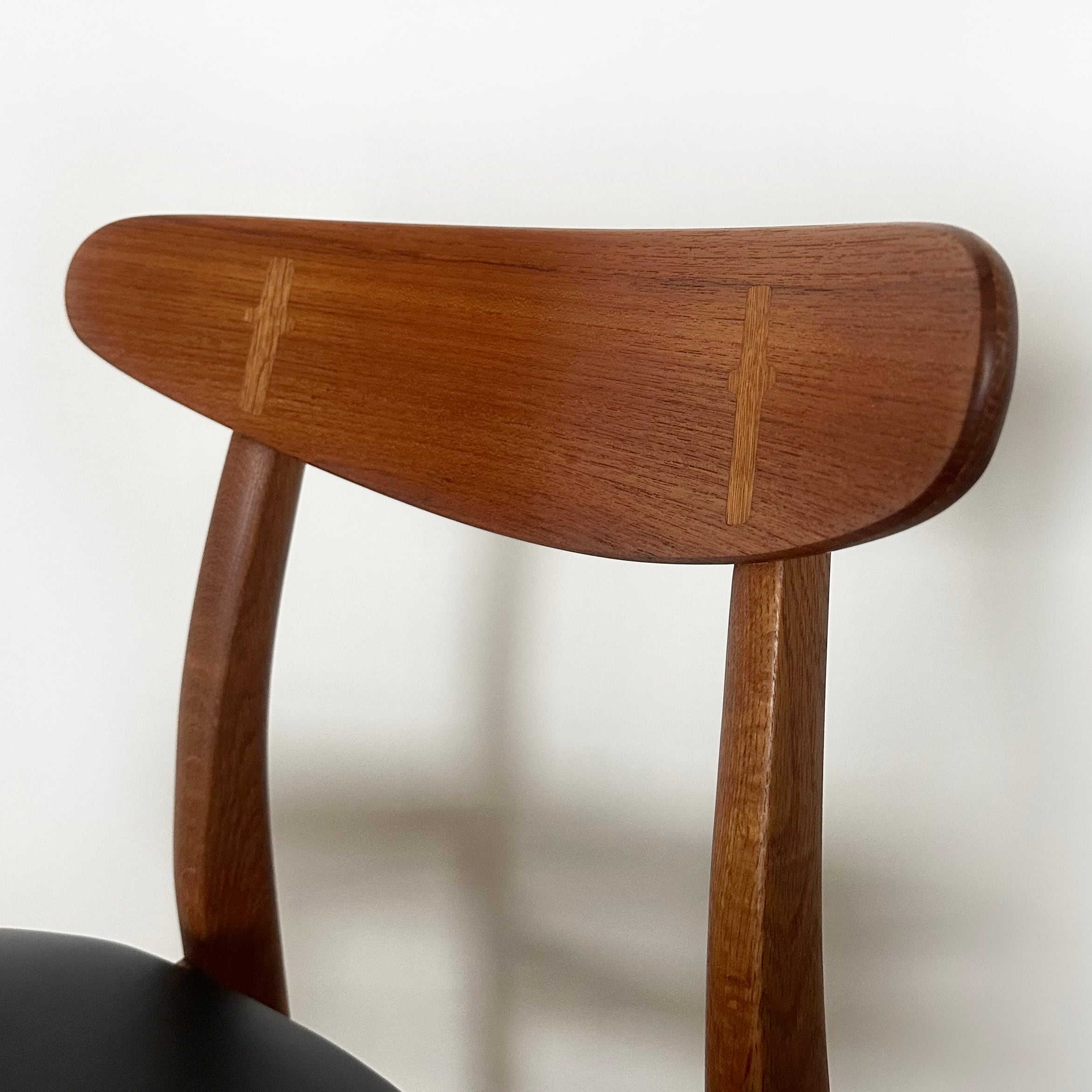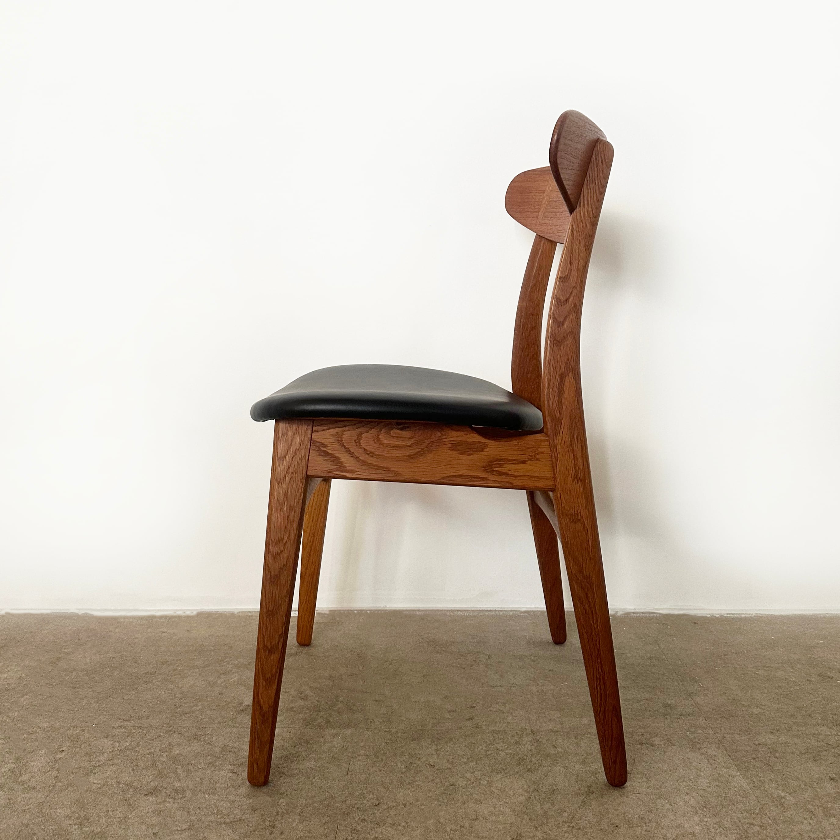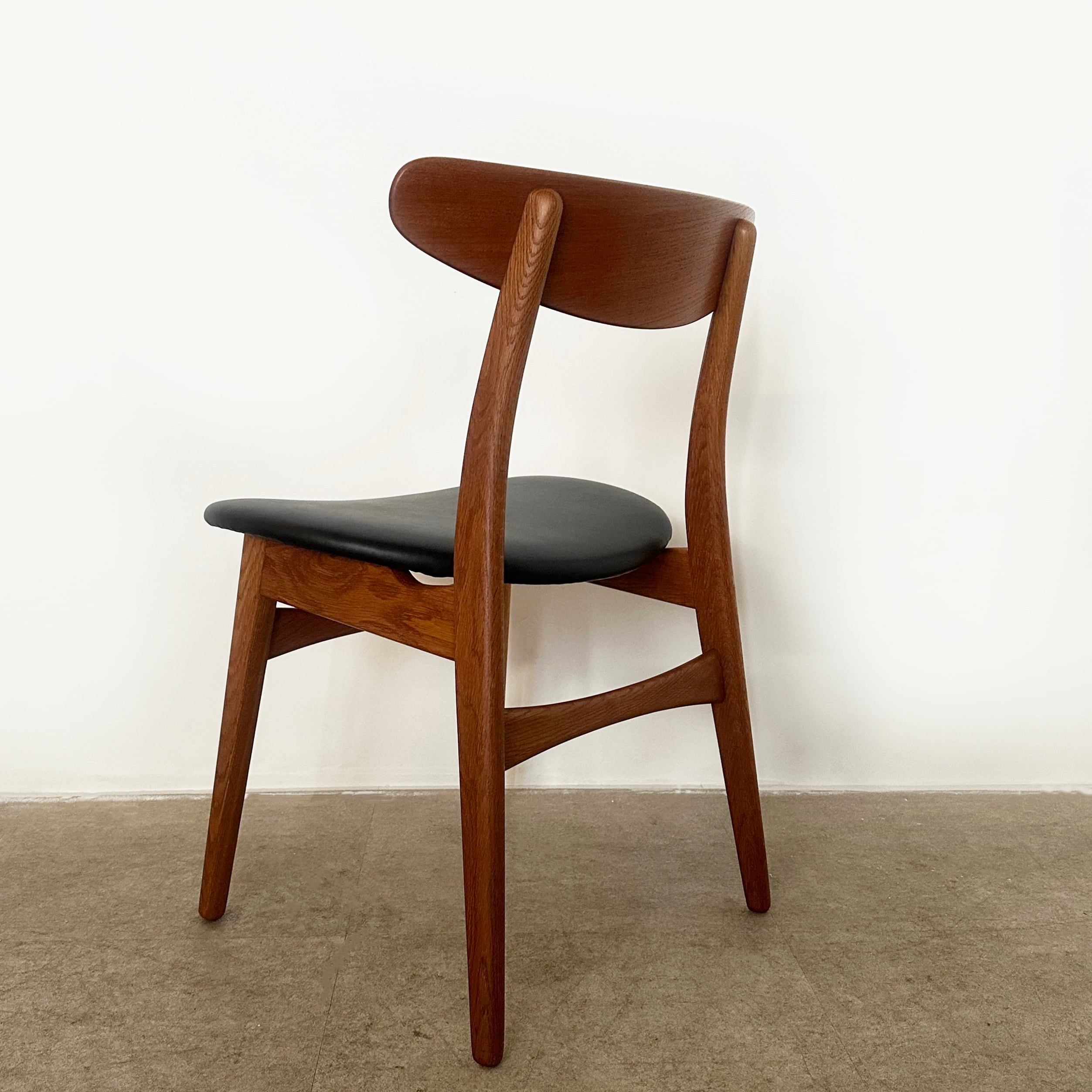 近年、カールハンセン&サン社よりオークとウォルナットを用いたモデルが現行品として復刻しましたが、本品はデザイン発表から間もない時期に作られたチークとオークのコンビネーションが美しいオリジナルのヴィンテージチェアです。