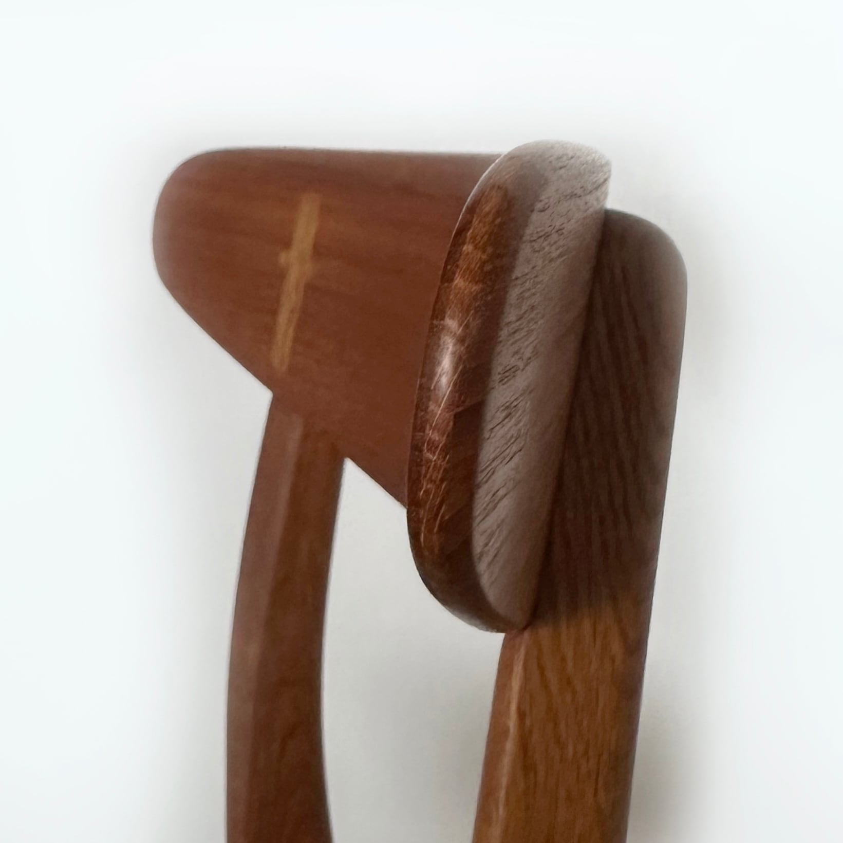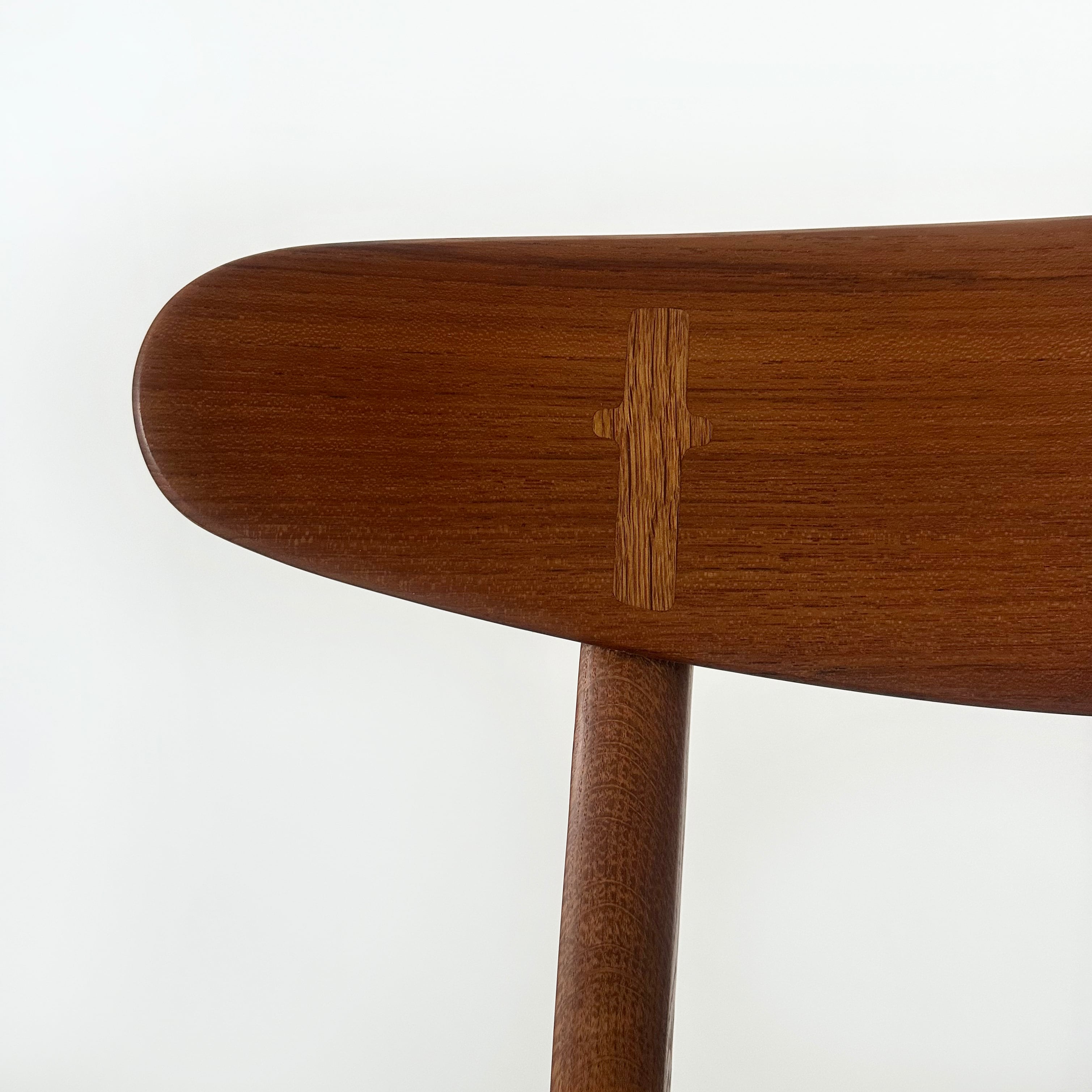 この椅子の魅力でありデザインのポイントは、背もたれに配されたクロスのパーツ。後脚と背もたれを連結するネジを隠すという実用的な役割を担いながら、視覚的なアクセントとしてこの椅子を強く印象づけるアイコンであり、実用性と造形美を見事に調和させたウェグナーのクラフトマンシップを象徴するものでもあります。