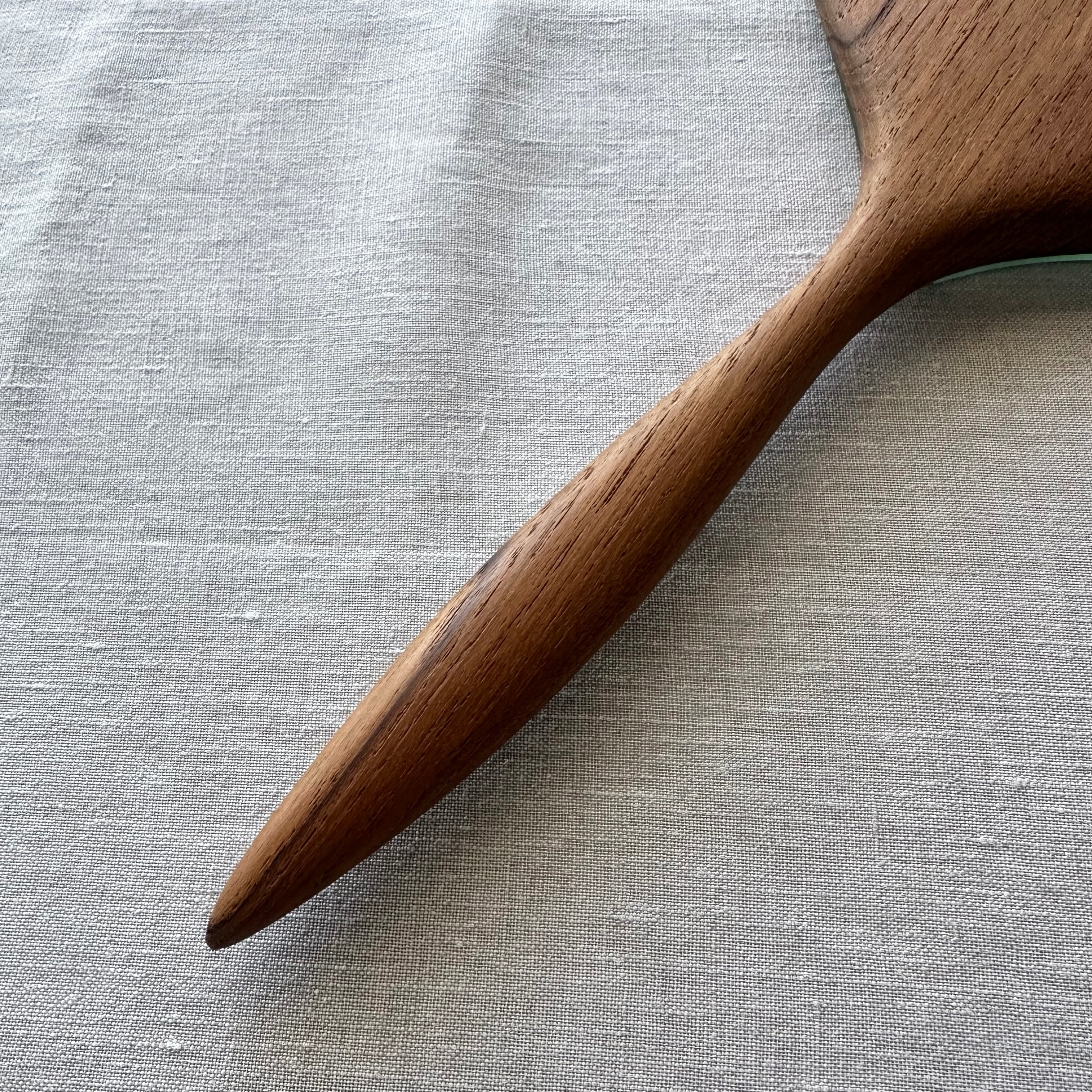 1960~70年代頃にスウェーデンで作られた手鏡。チークの無垢材と緩やかなカーブを描くミラーが美しく調和し、どこか懐かしさを感じる表情が魅力です。