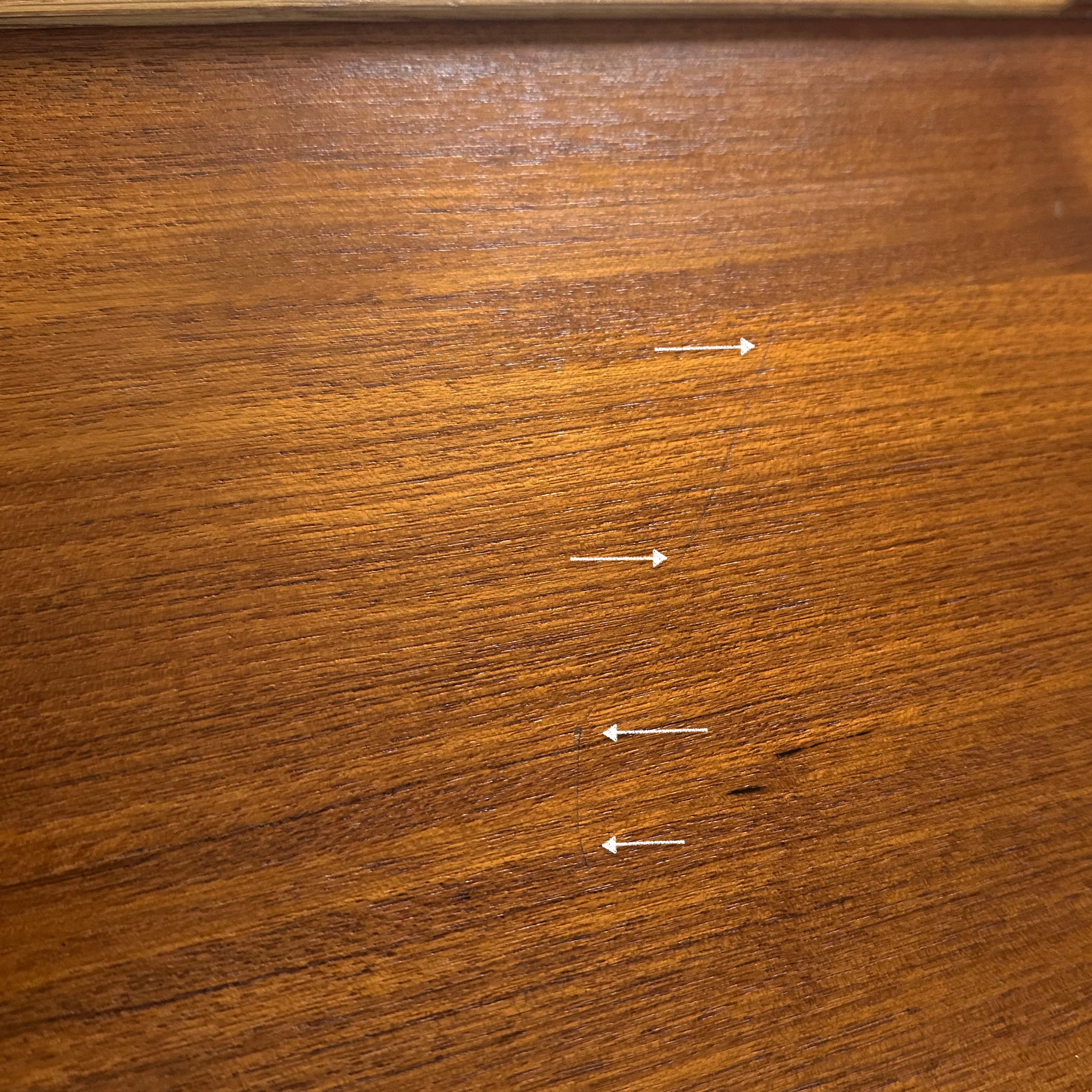 小さなキズがいくつかありますが、どのキズも家具全体として見た際にはほとんど目立たない程度です。