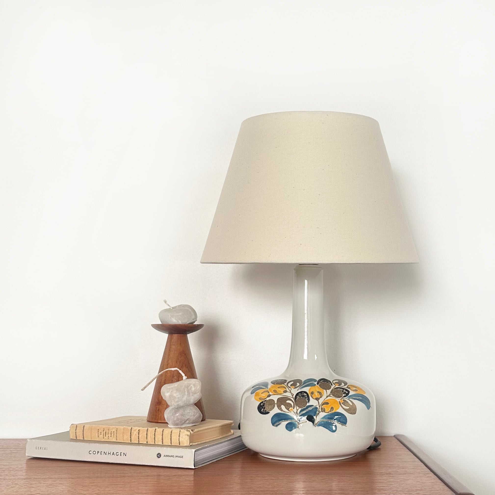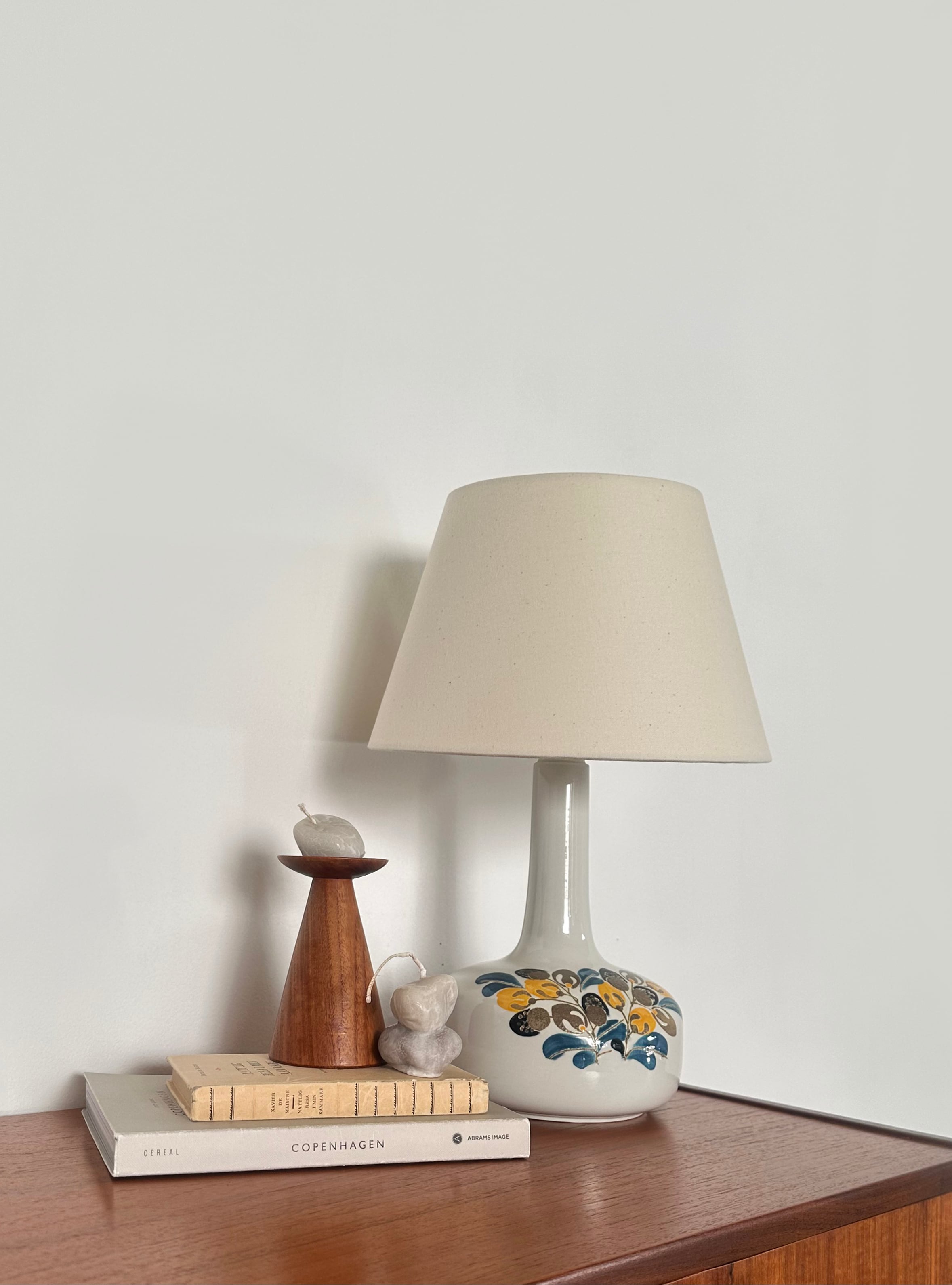 1960年代にデンマークの名窯 Royal Copenhagen(ロイヤルコペンハーゲン) にて作られた、テーブルランプ “Siena(シエナ)”。1965年から1988年にかけて同窯で活躍したデザイナー Ellen Malmer(エレン・マルマー) によって生み出されました。
