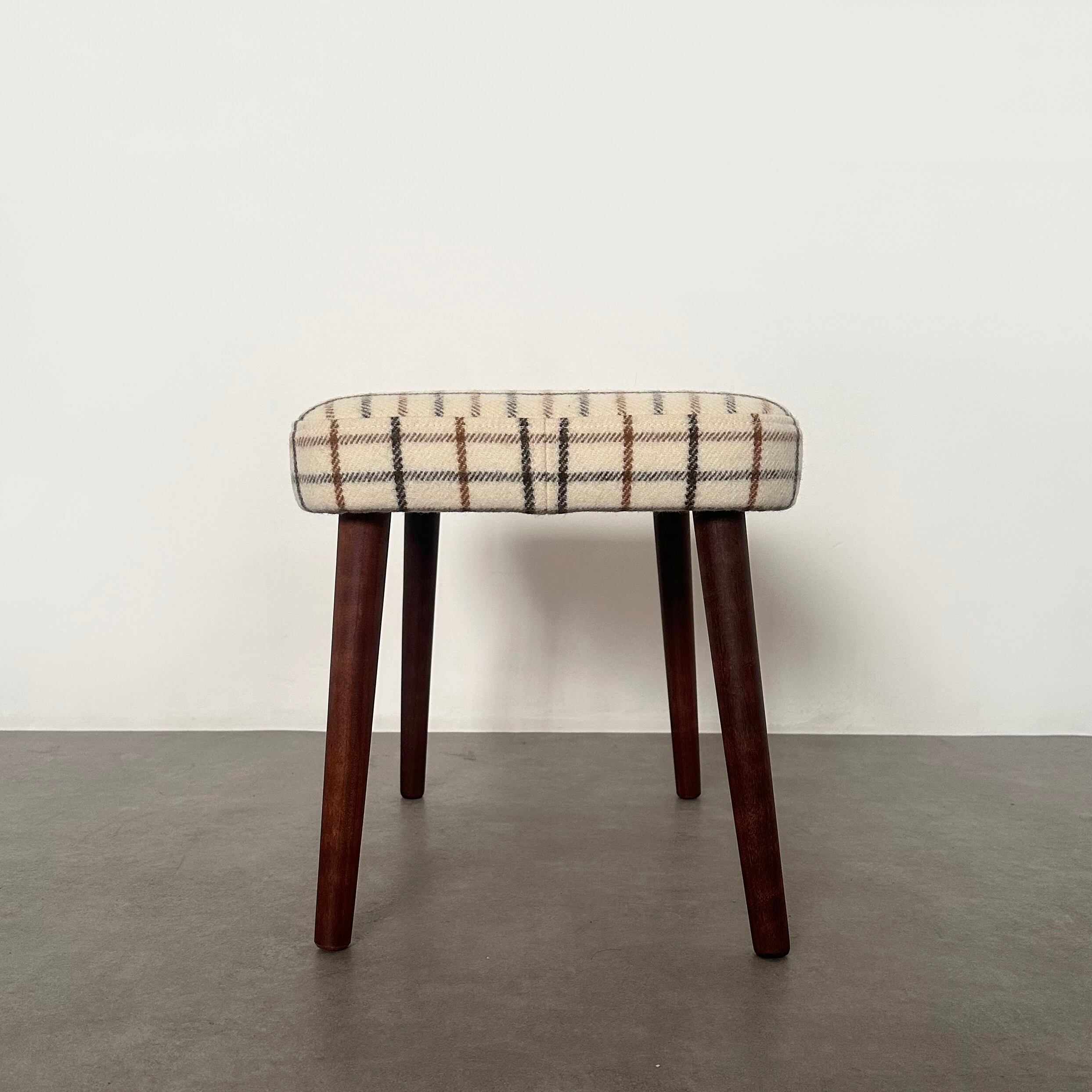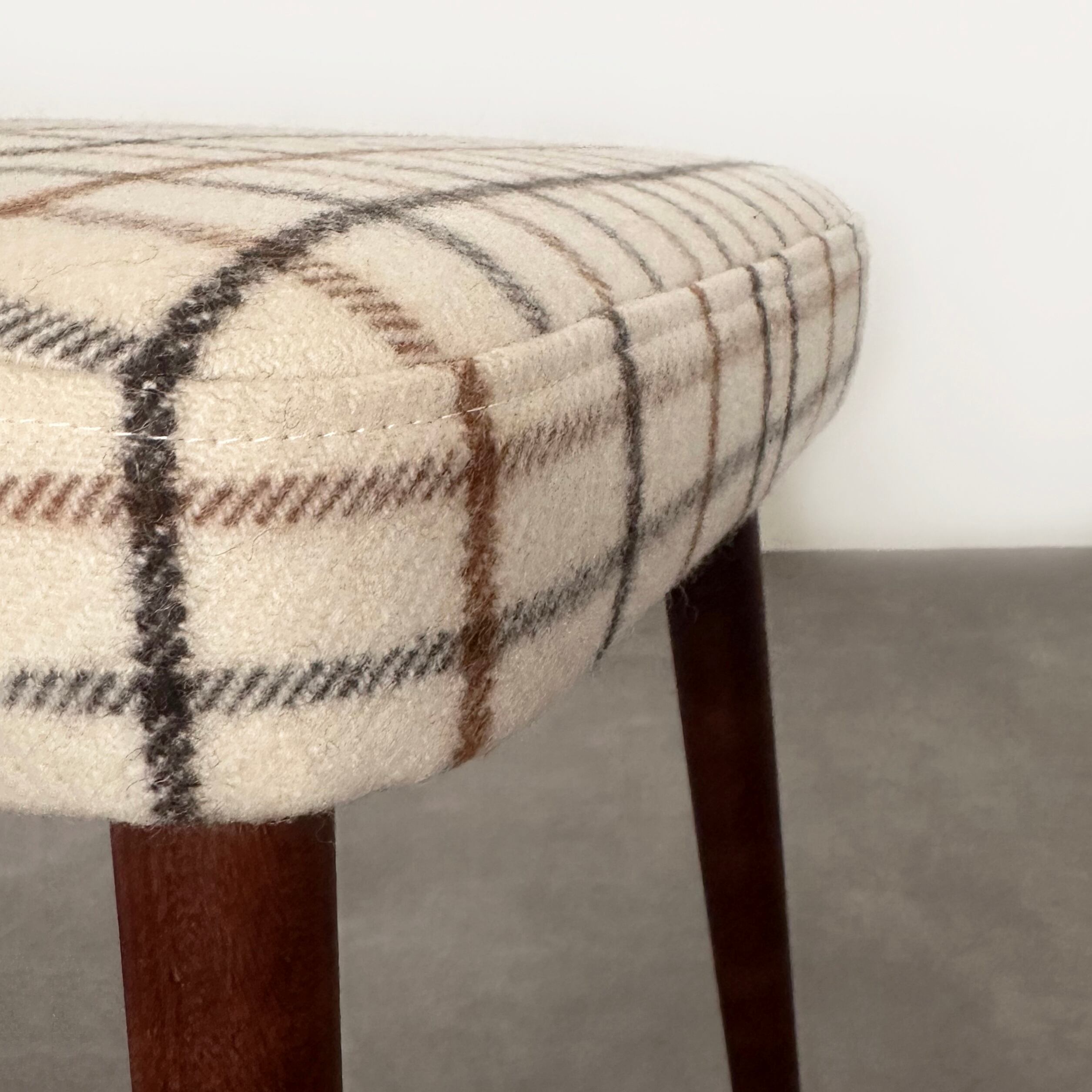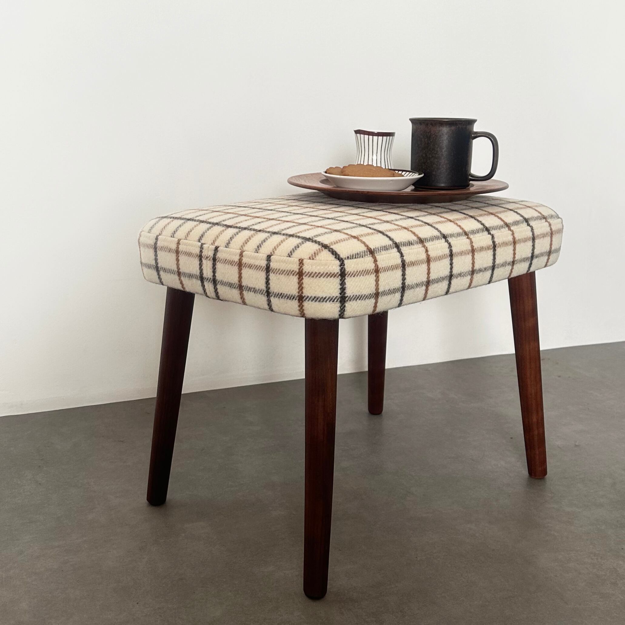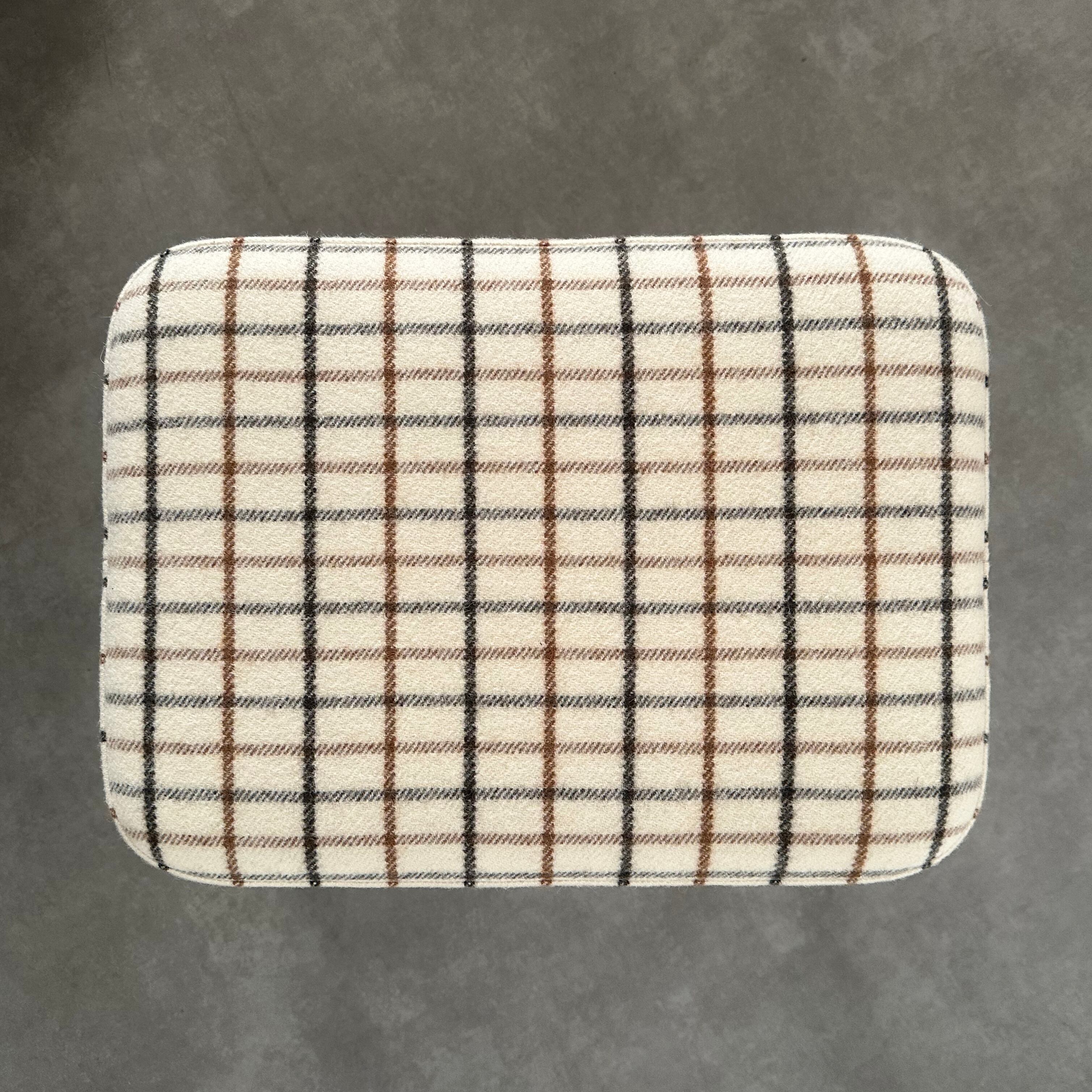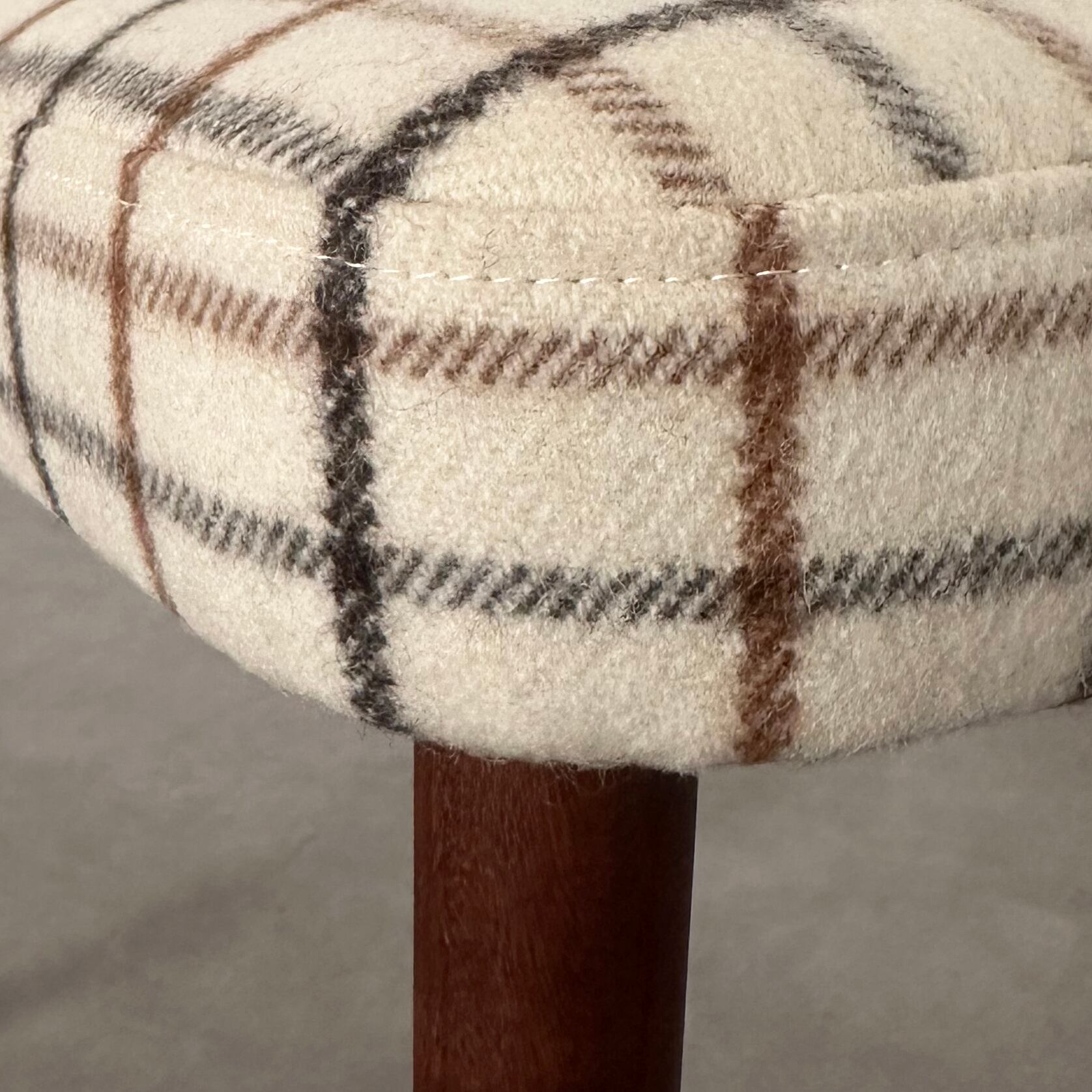 このスツールの個性を形造るのは落ち着いた色合いのチェックの模様。
