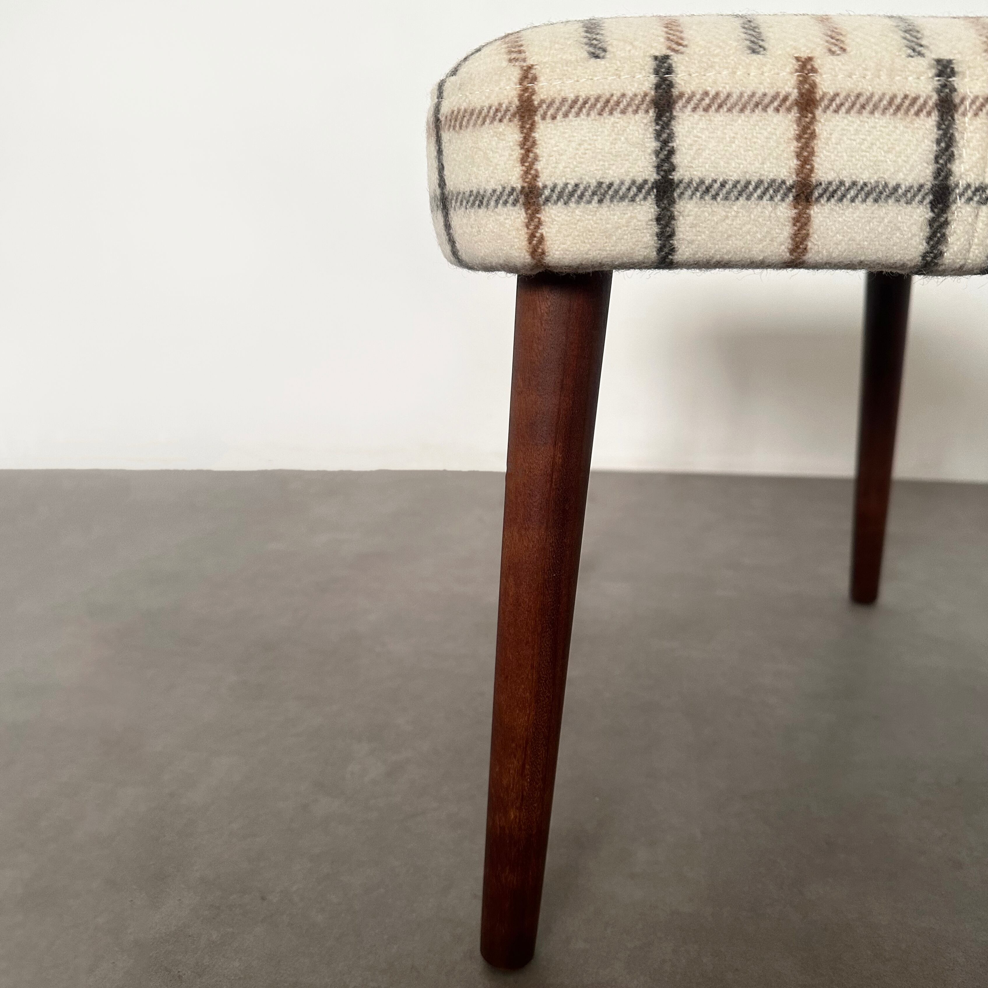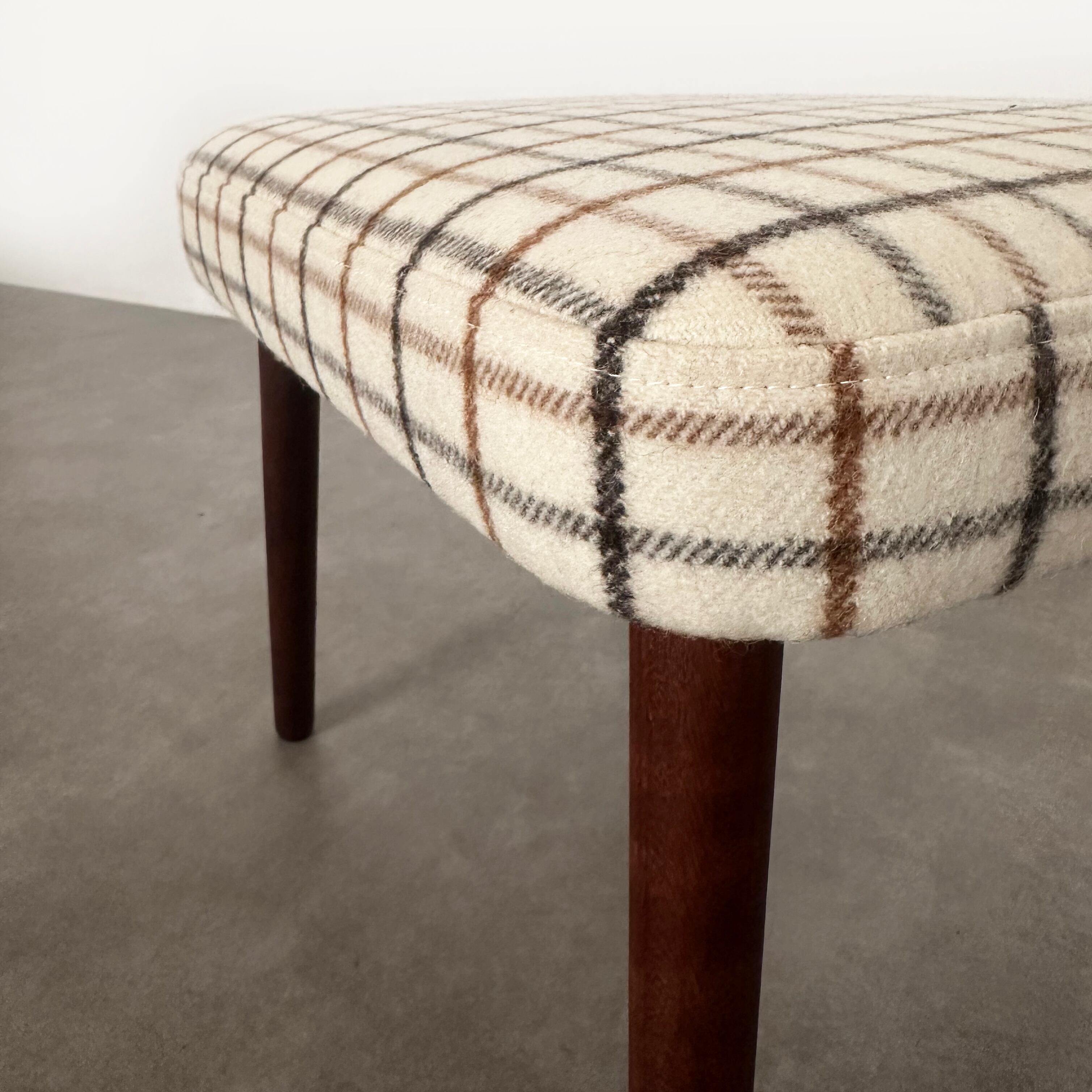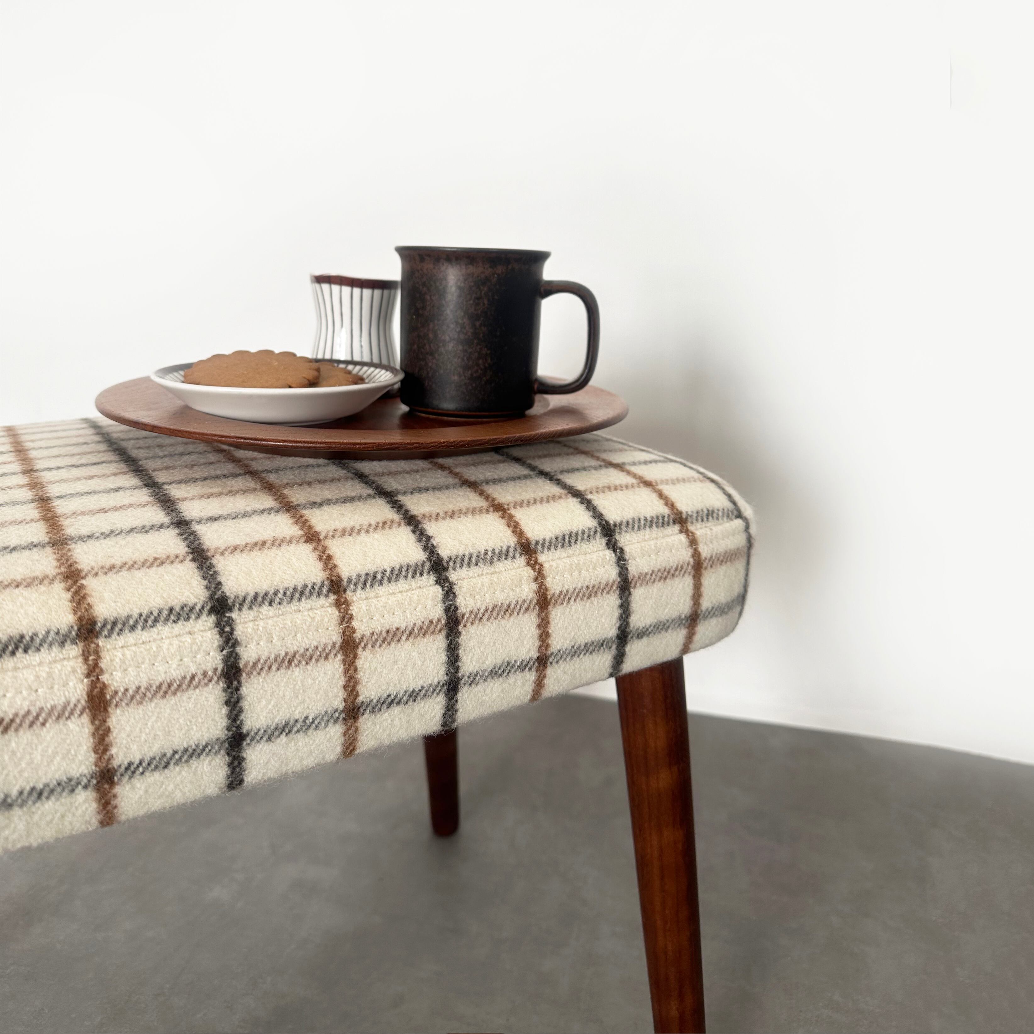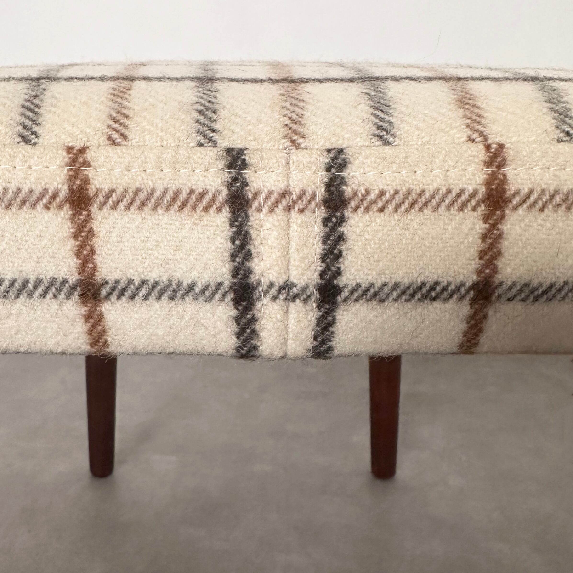 このスツールの個性を形造るのは落ち着いた色合いのチェックの模様。