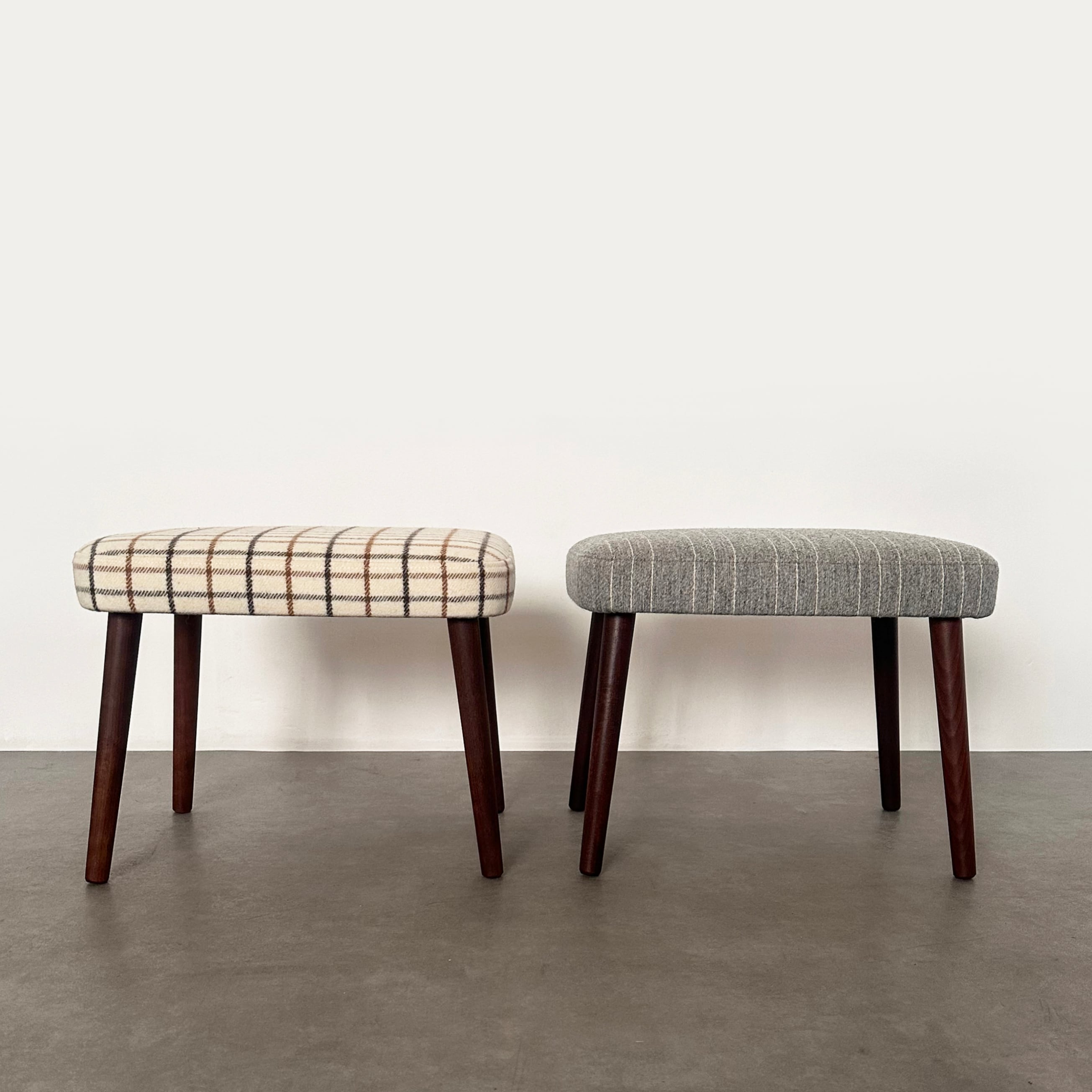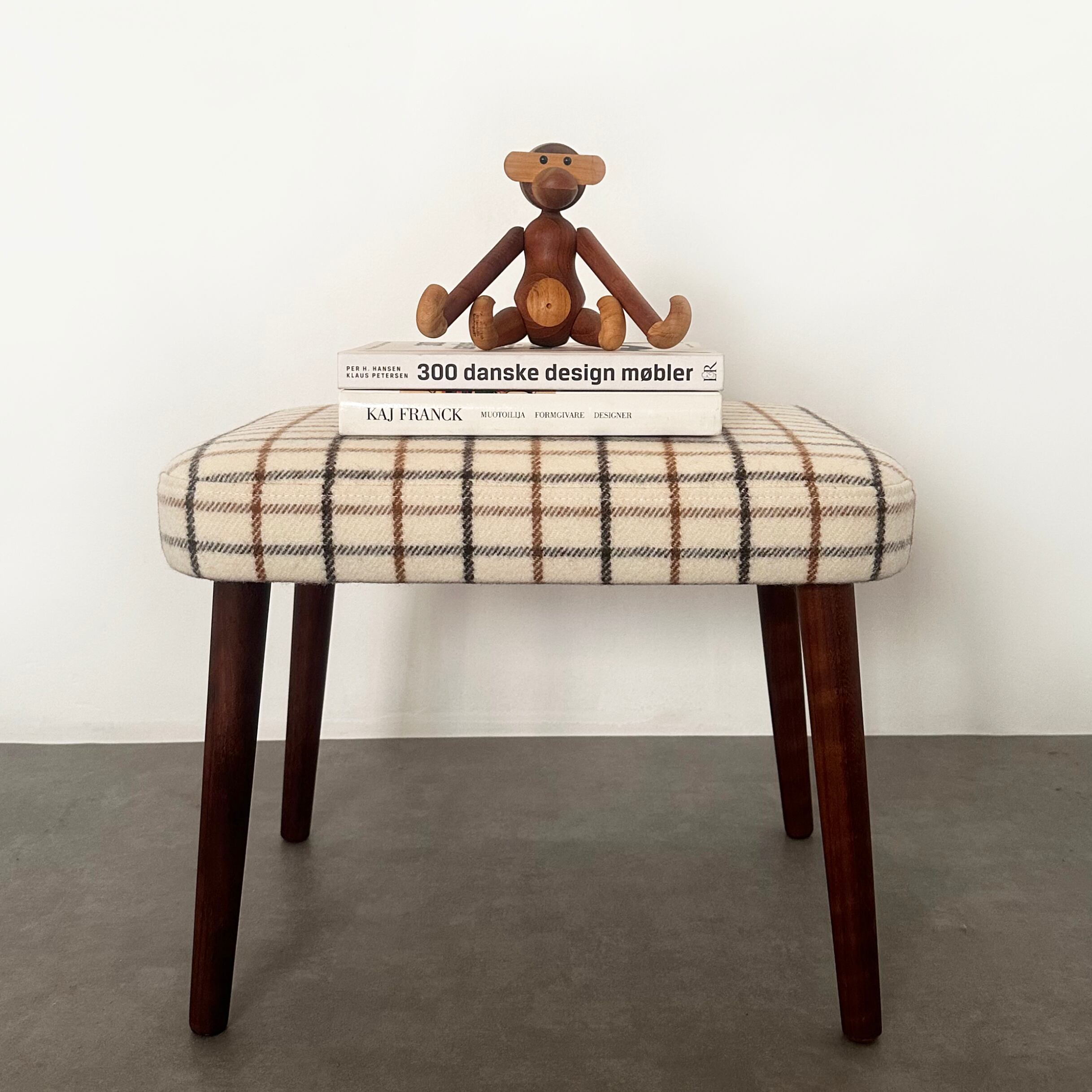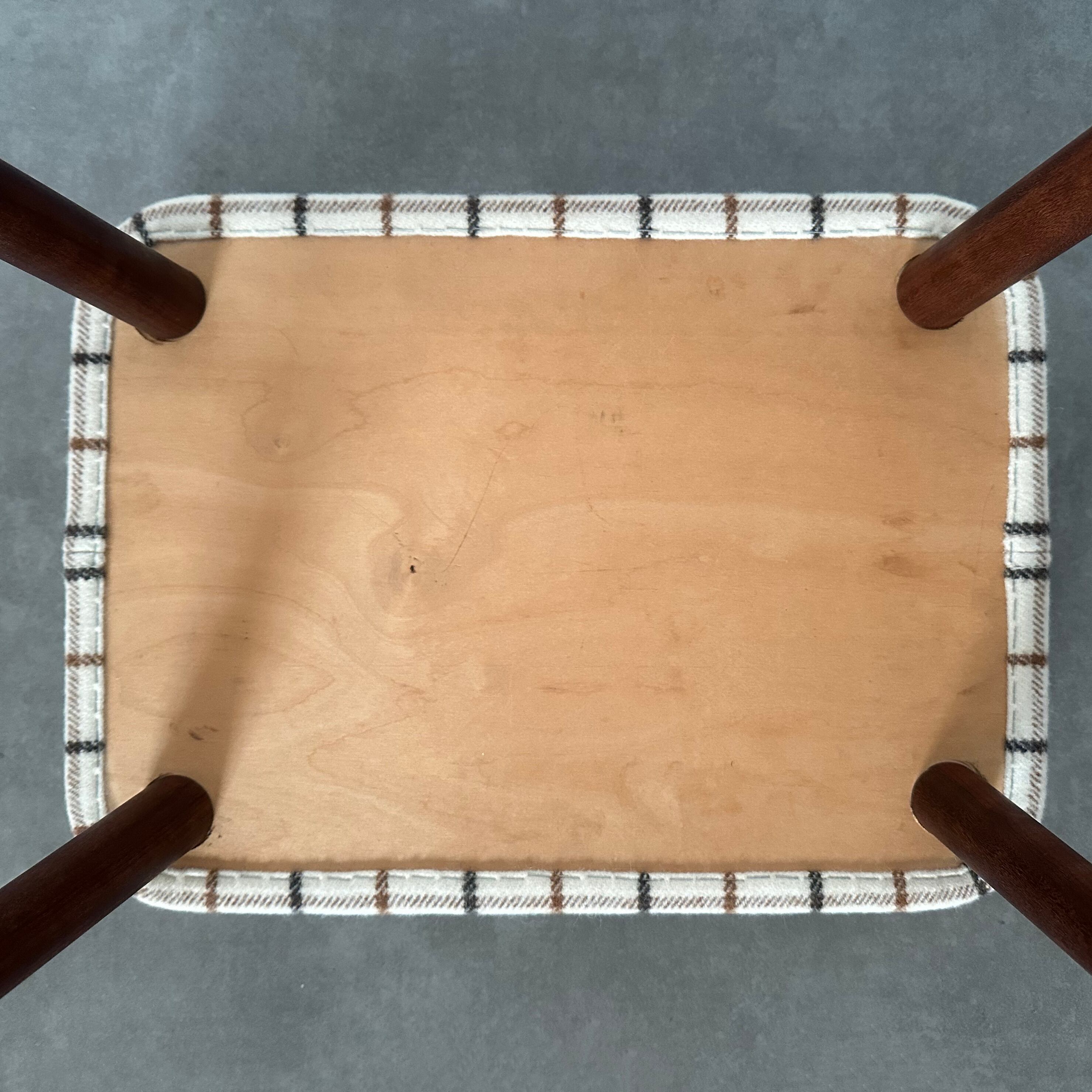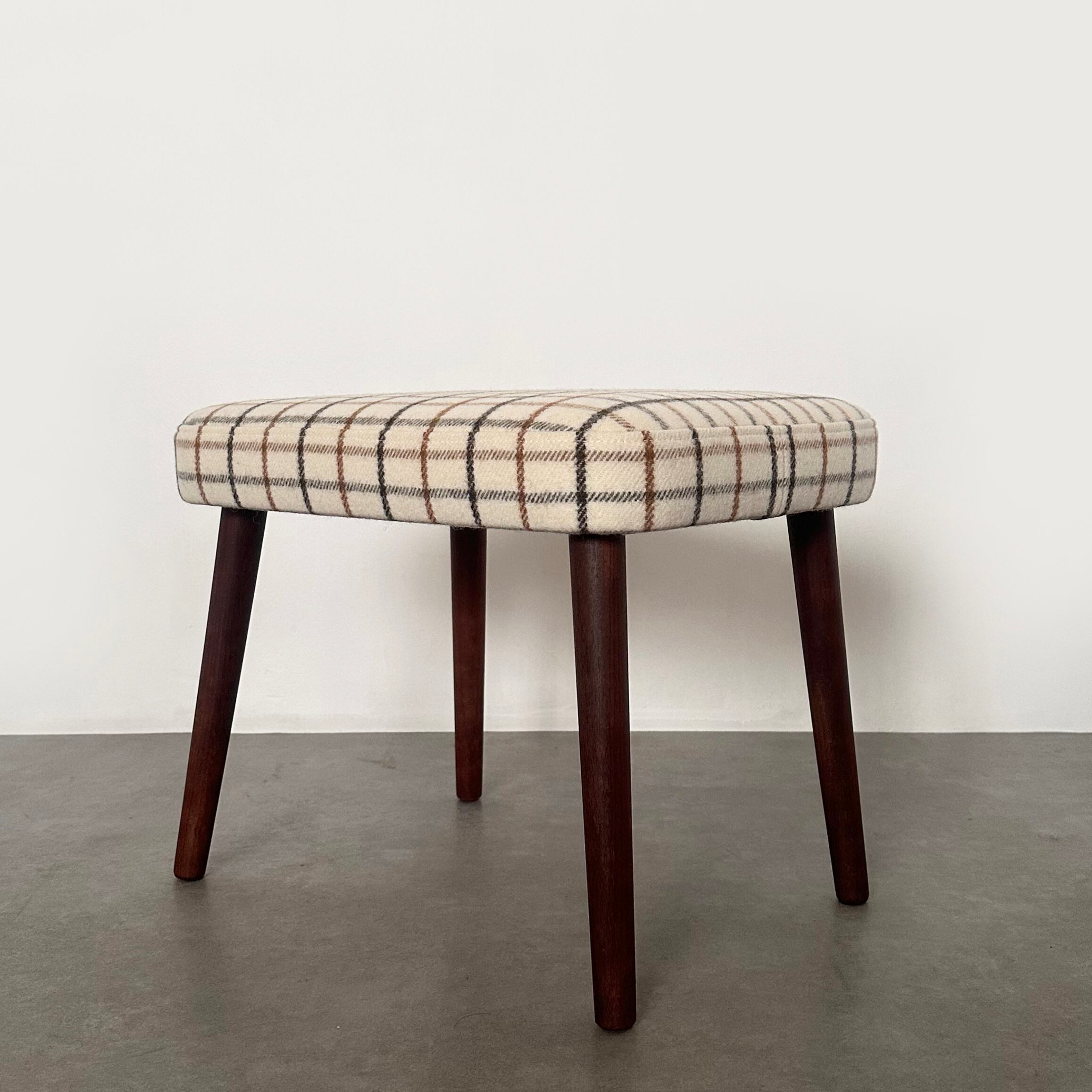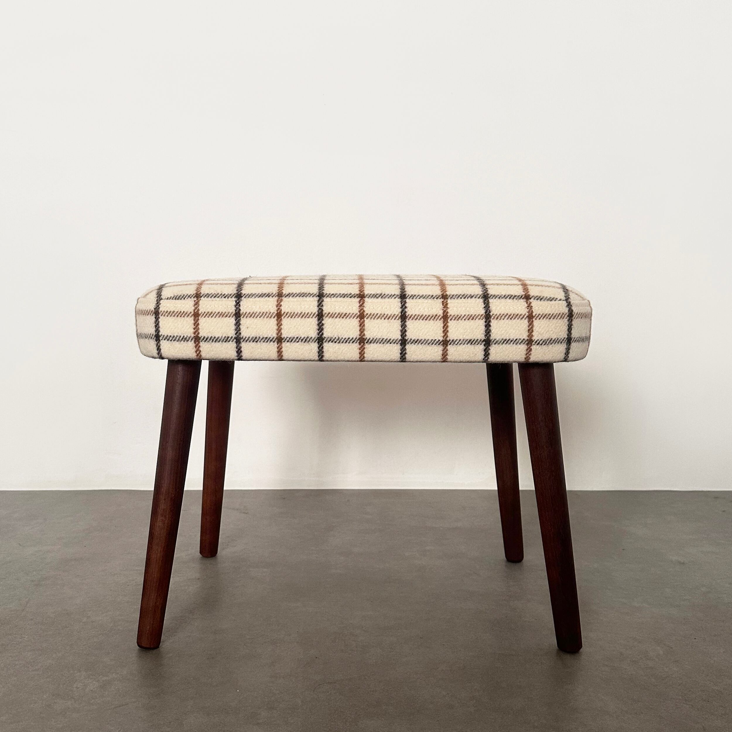 このスツールの個性を形造るのは落ち着いた色合いのチェックの模様。