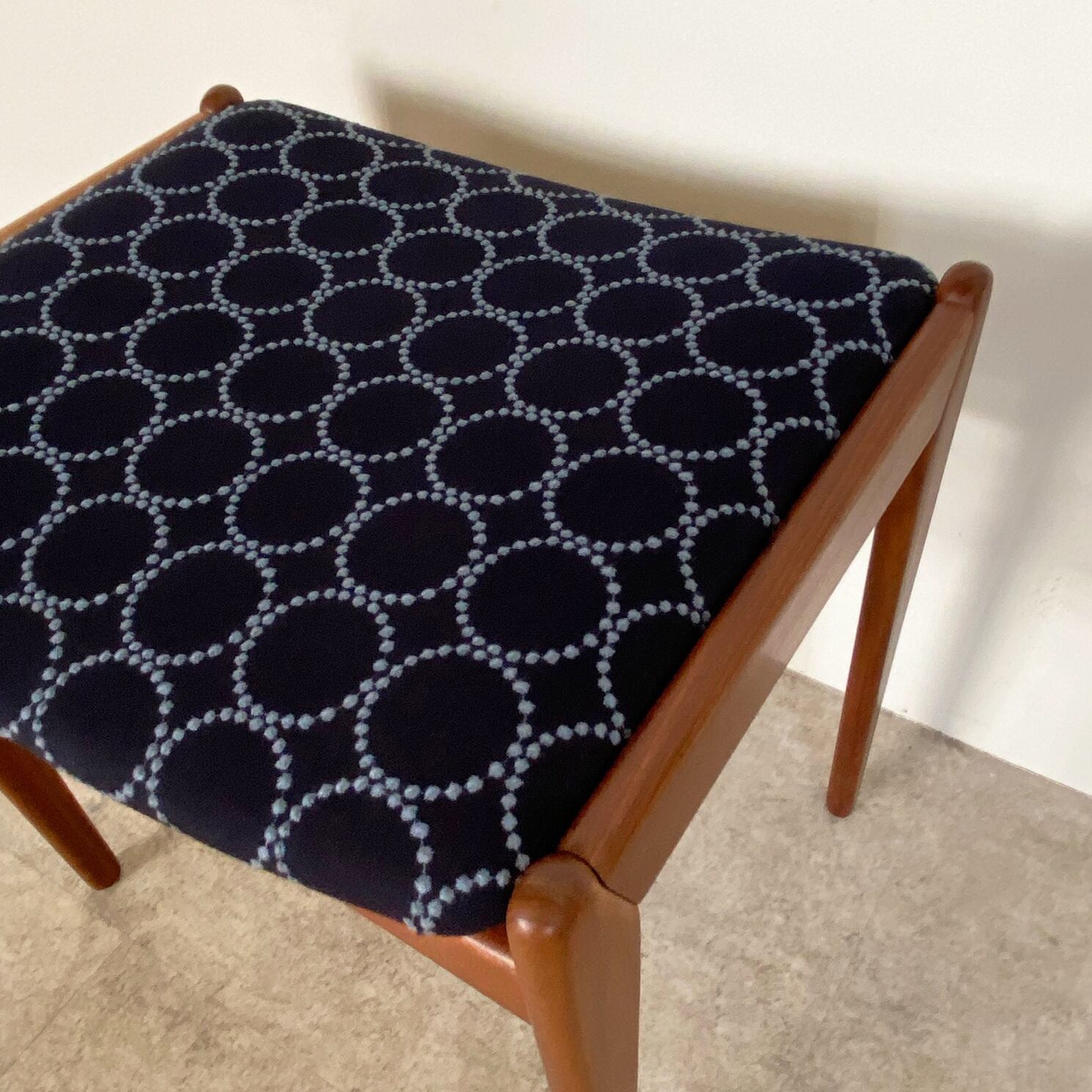 丁寧な木部のリペアとウレタンの交換を含むシートの張替え(mina perhonenのdop tambourine)を行いました。木部にごく小さなキズがありますが、目立つことはなく全体の印象を損ねるものではありません。深みを増したヴィンテージのチーク材ならではの色合いと、美しい艶を長く楽しんでいたける仕上がりになっております。詳しくは画像にてご確認ください。