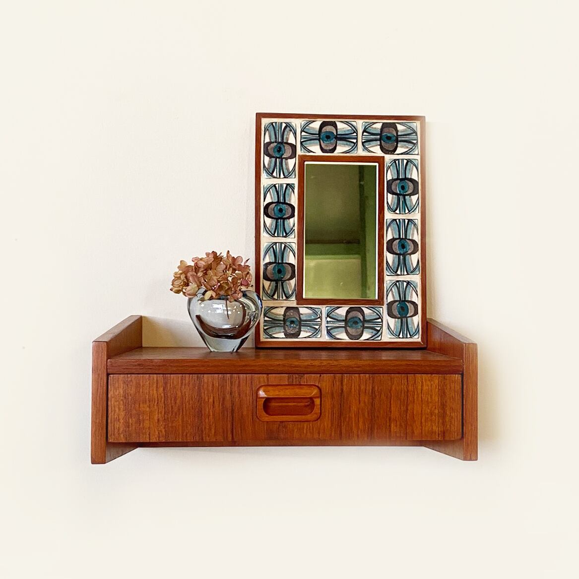 1960年代にスウェーデンで作られたウォールシェルフ。ミラーとセットでドレッサーとして、寝室ではベッドサイドテーブルとしてなど、使い方は置く場所やアイデアでさまざま。飾るものを変えるだけで気軽に空間の気分転換ができるのもシェルフのよいところ。季節のしつらえやお気に入りを並べたり、暮らしに楽しさをもたらしてくれる一台です。