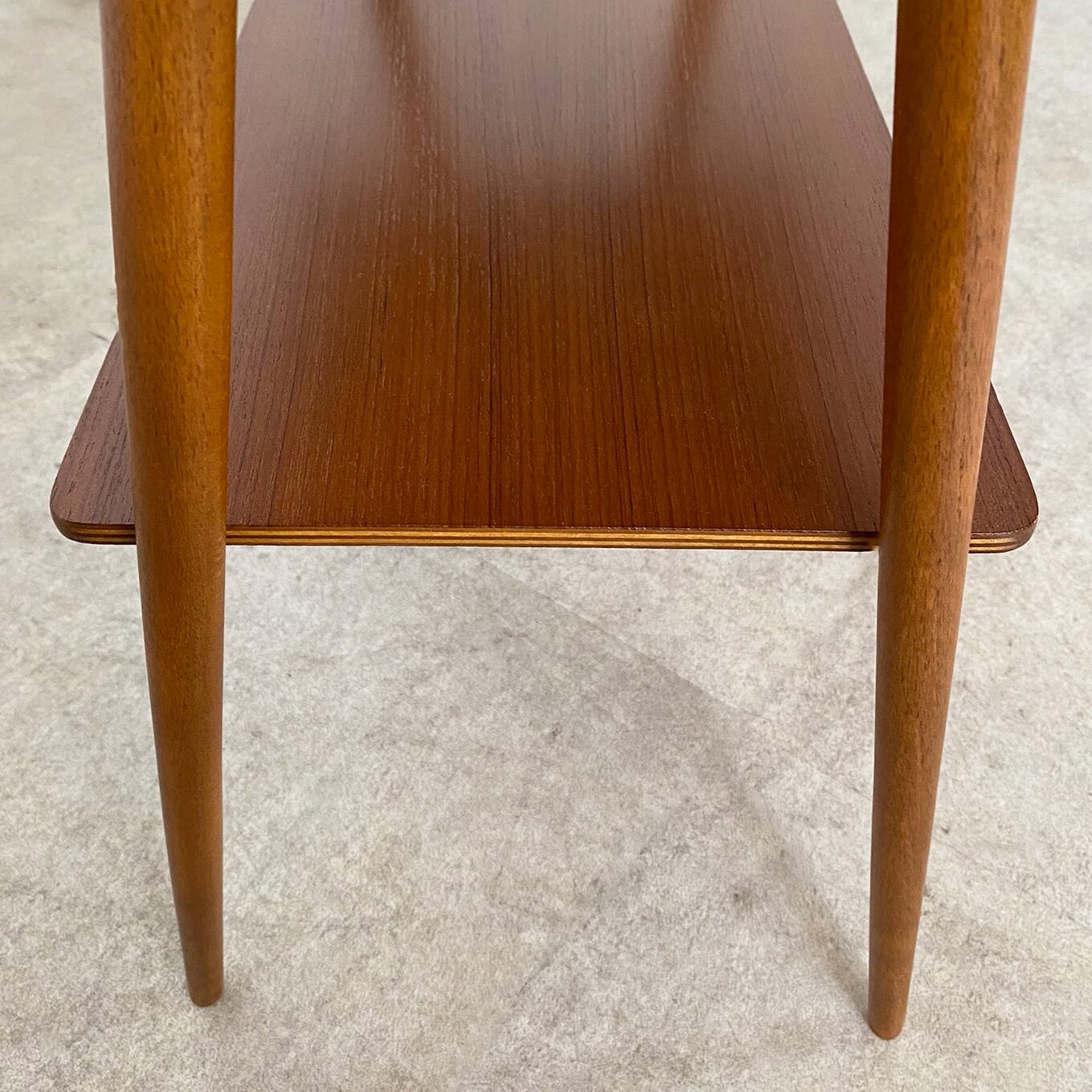 1960年代にスウェーデンで作られたベッドサイドテーブル。その魅力は小ぶりながらも天板、抽斗、棚板と異なる機能性を備えているところ。リモコンなどのしまっておきたい生活雑貨をすっきりと納めたり、読みかけの本を置いたりなど、ソフアやベッドのまわりを整えながら空間のアクセントとして暮らしの景色を豊かにしてくれる一台です。