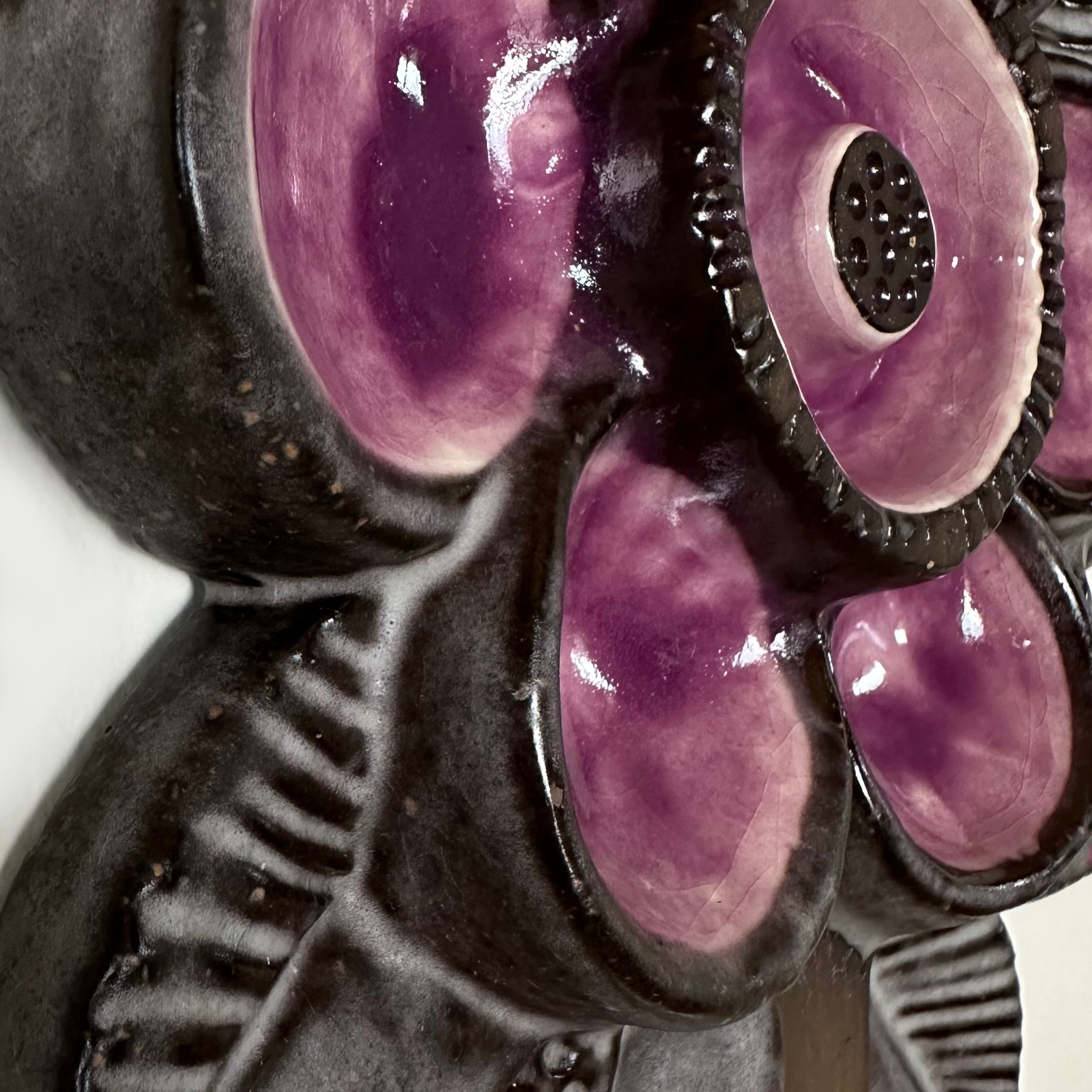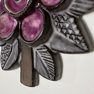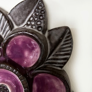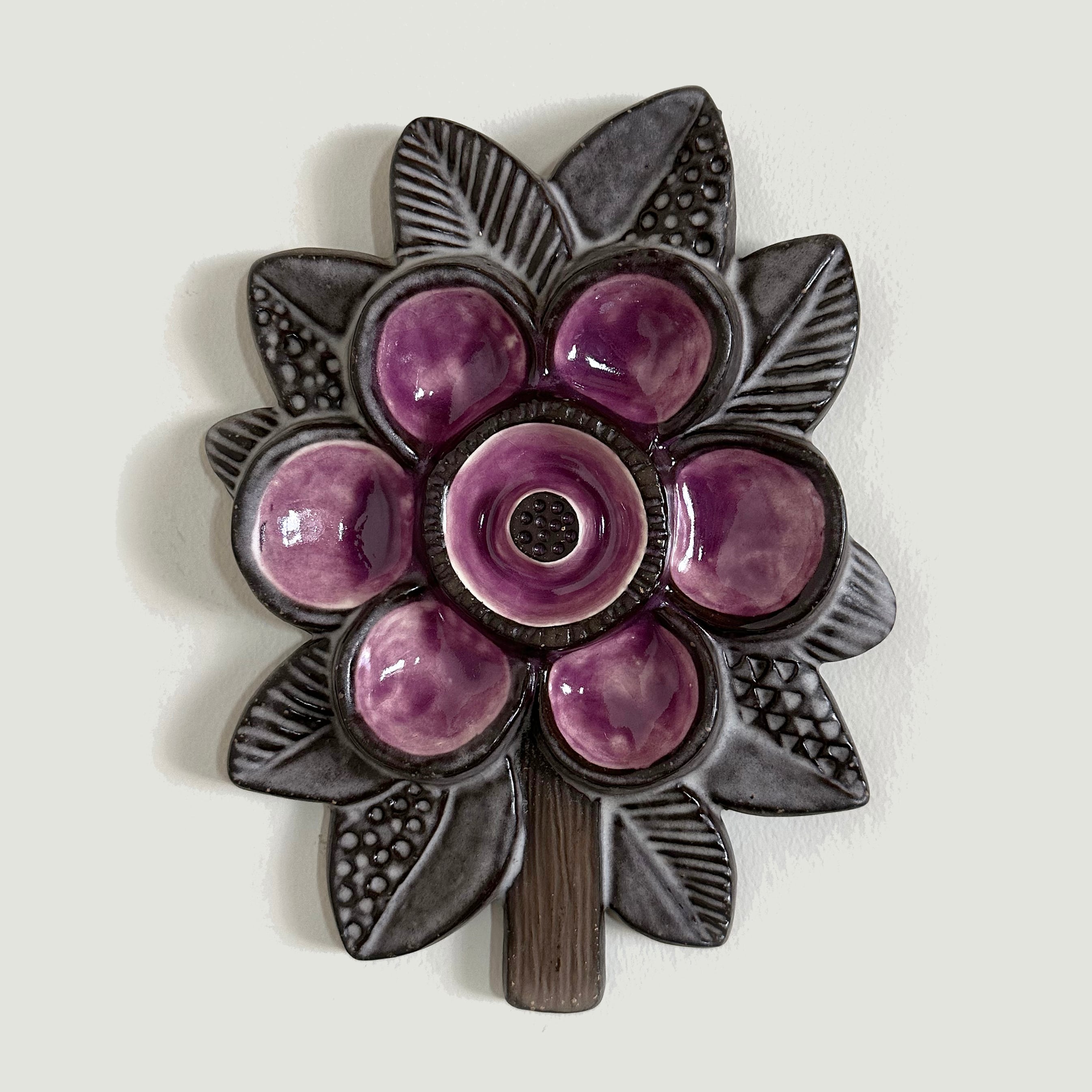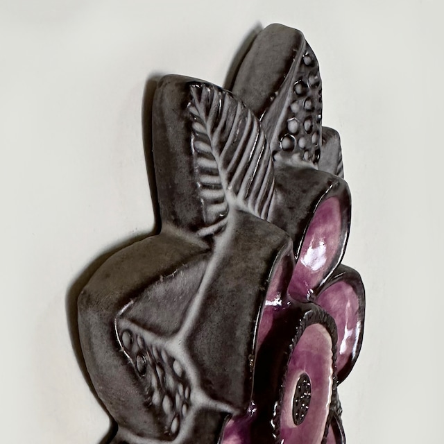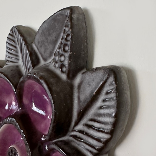 スウェーデンの女性デザイナー、Irma Yourstone(イルマ・ユアストン) デザインの、花をモチーフにしたウォールデコレーション。ぽってりとした陶器の質感と落ち着いた色調のパープルの艶やかな透明感が織りなすコントラストが、豊かな味わいと美しい存在感をもたらしています。